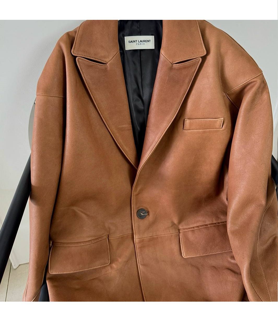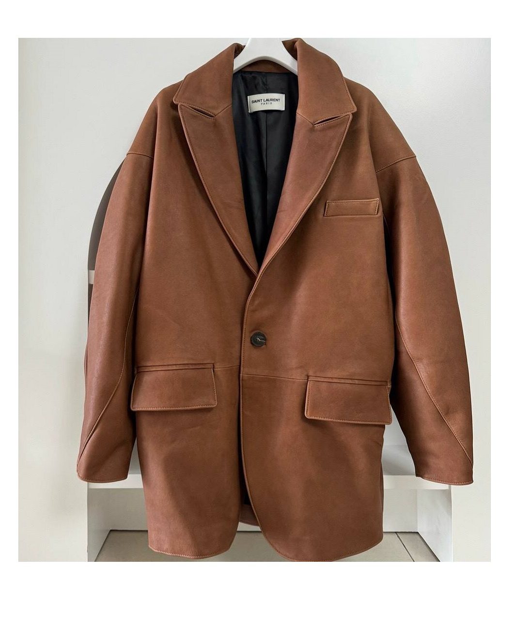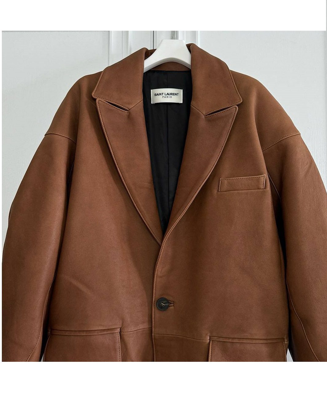 Куртка замшевая Saint Laurent в коричневом цвете. Данная модель в виде строгого пиджака с карманами и воротником. Купив куртку Saint Laurent вы дополните свой образ.