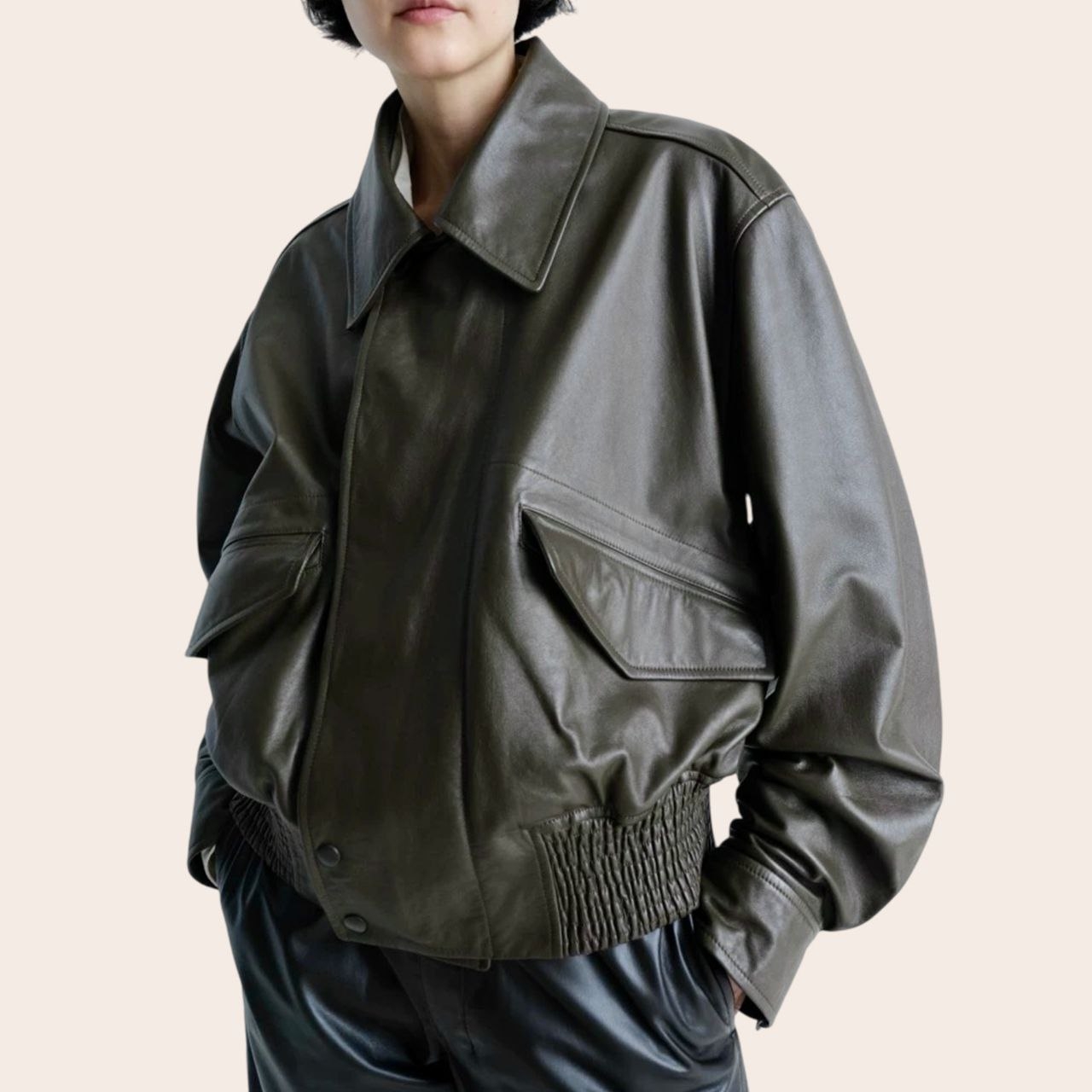 Кожаная куртка Lemaire выполнена из натуральной кожи. Модель имеет спущенные плечи, застежку-молнию с планкой и накладные карманы. Куртка создаст дерзкий и современный образ.