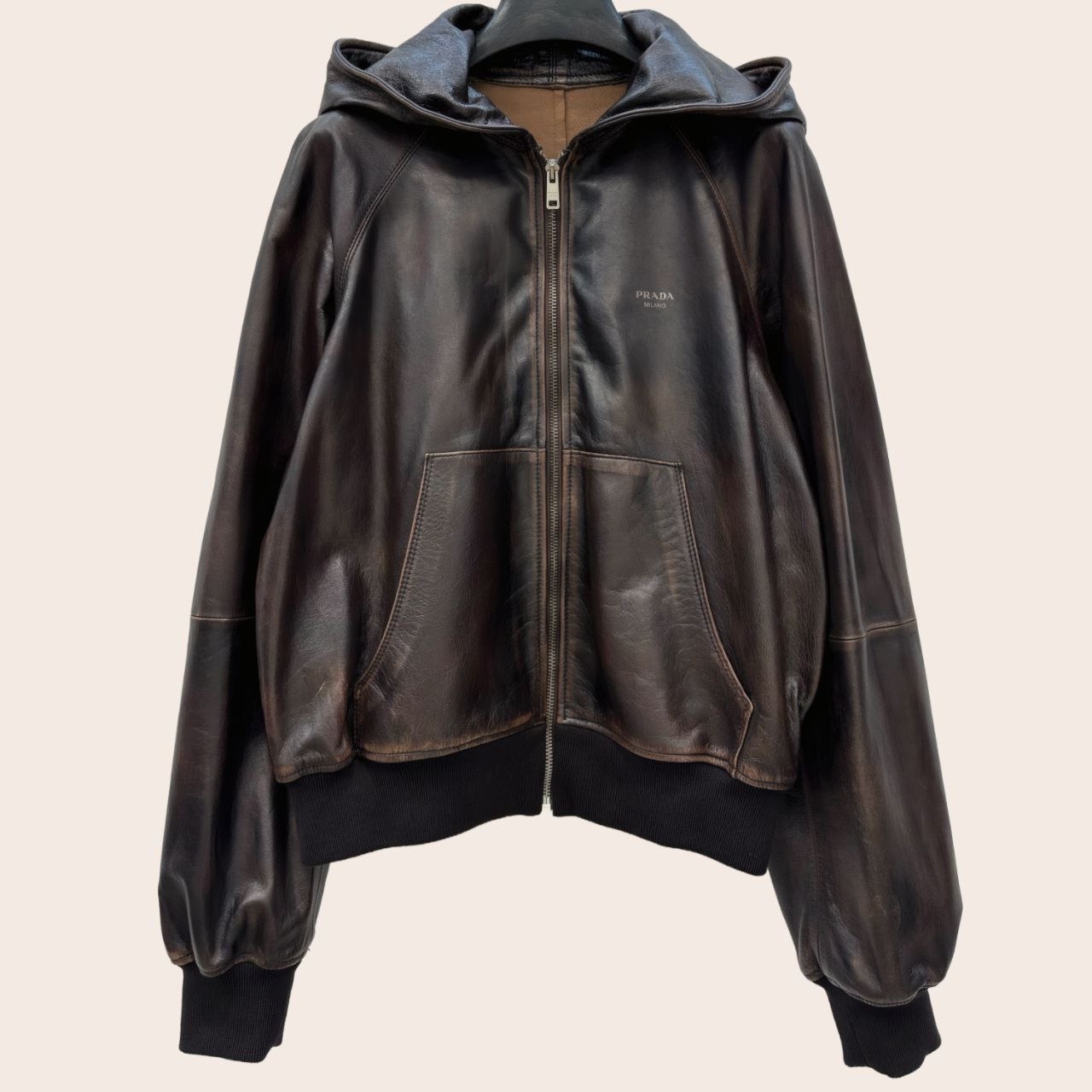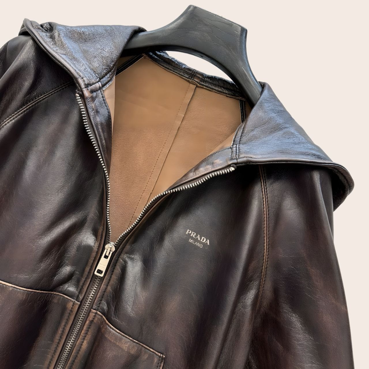 Куртка Prada кожаная с капюшоном- Бренд Prada