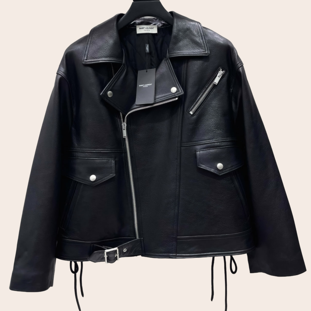 Кожаная куртка SAINT LAURENT, одновременно крутая и изысканная в современном стиле. Модель на молнии с большими карманами и с ремнем создаст незабываемый образ.