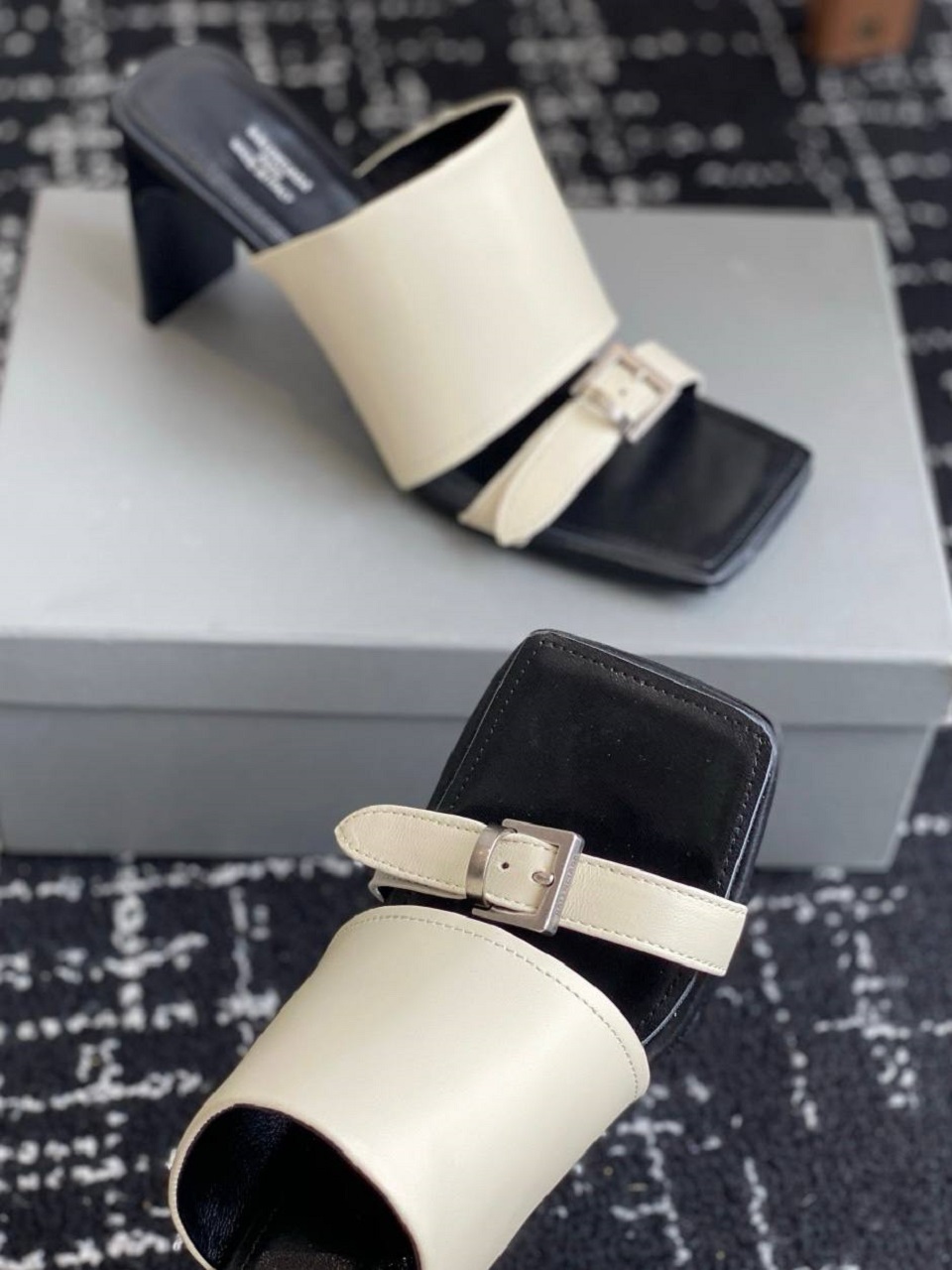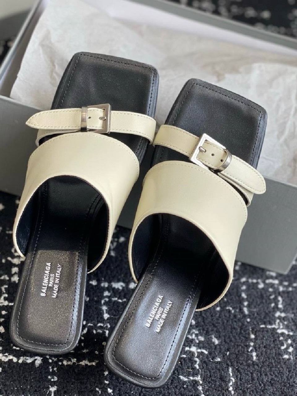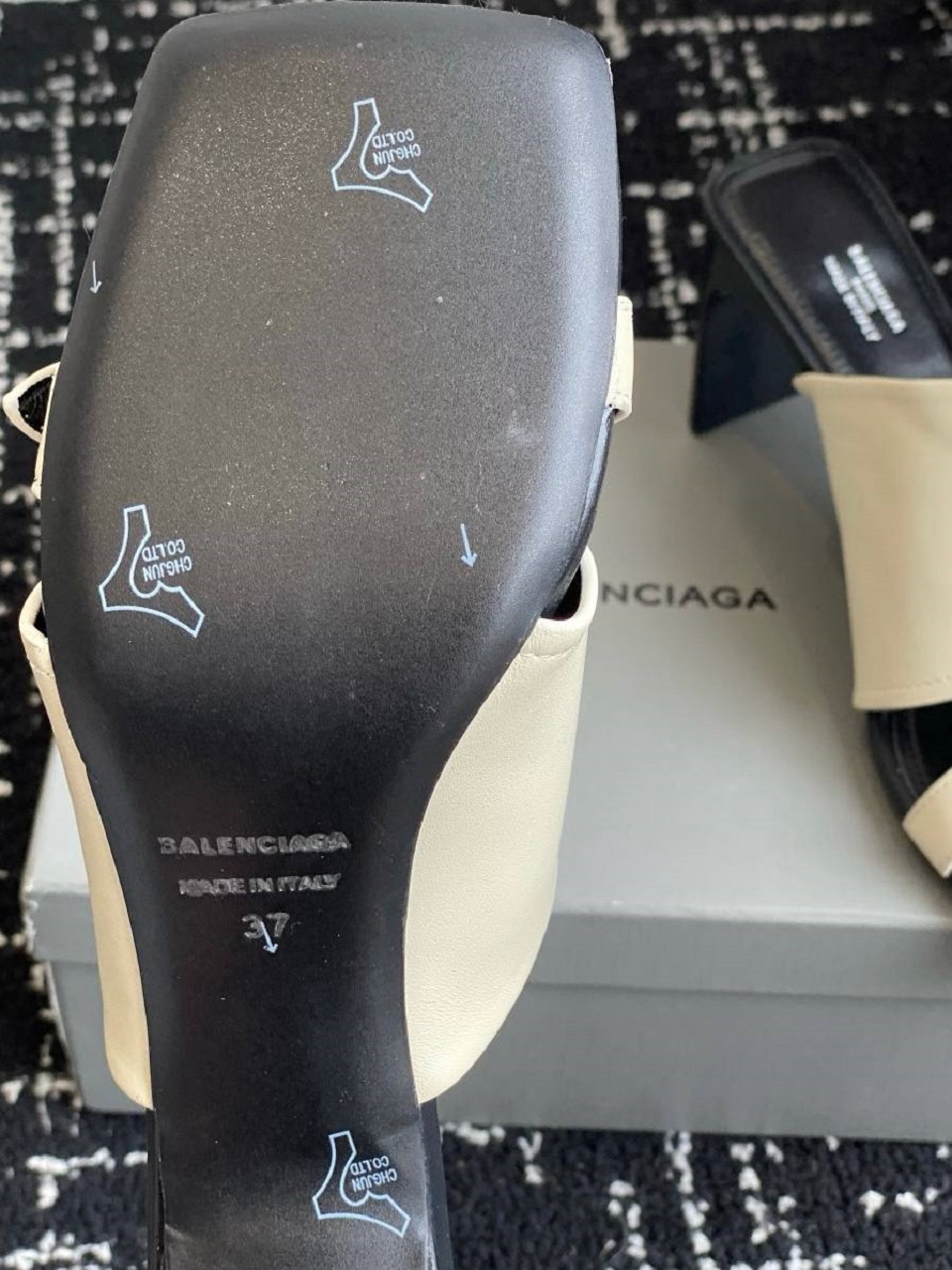 Мюли Balenciaga Bel Air выполнены из черной и белой натуральной кожи. Мюли с квадратным носком без застежек, украшены ремешками и логотипом бренда на стельке.
