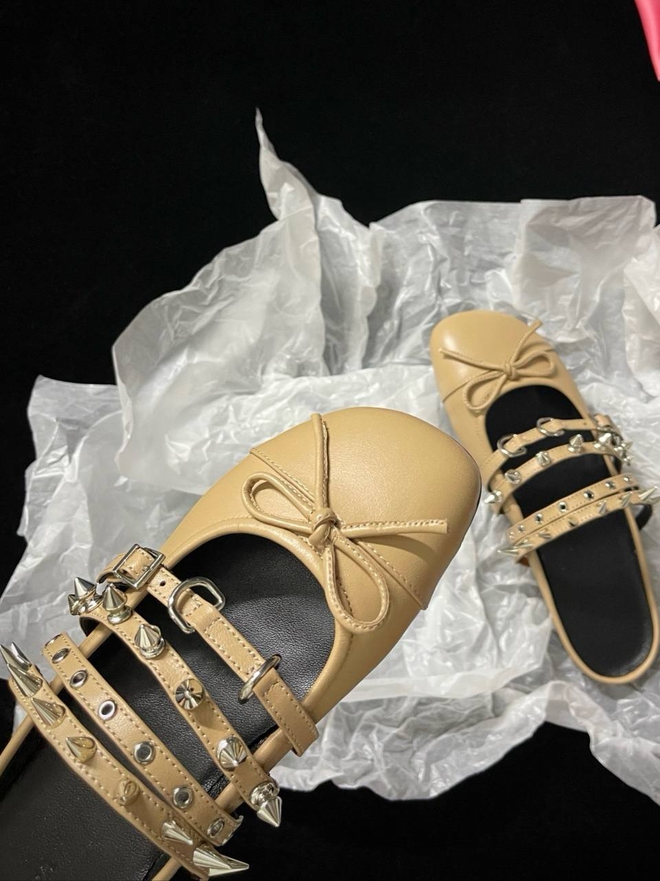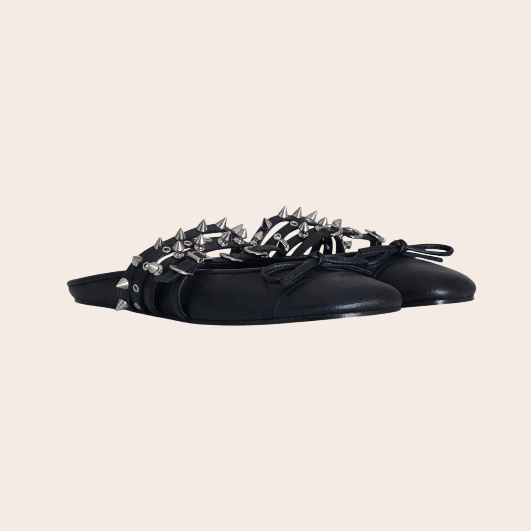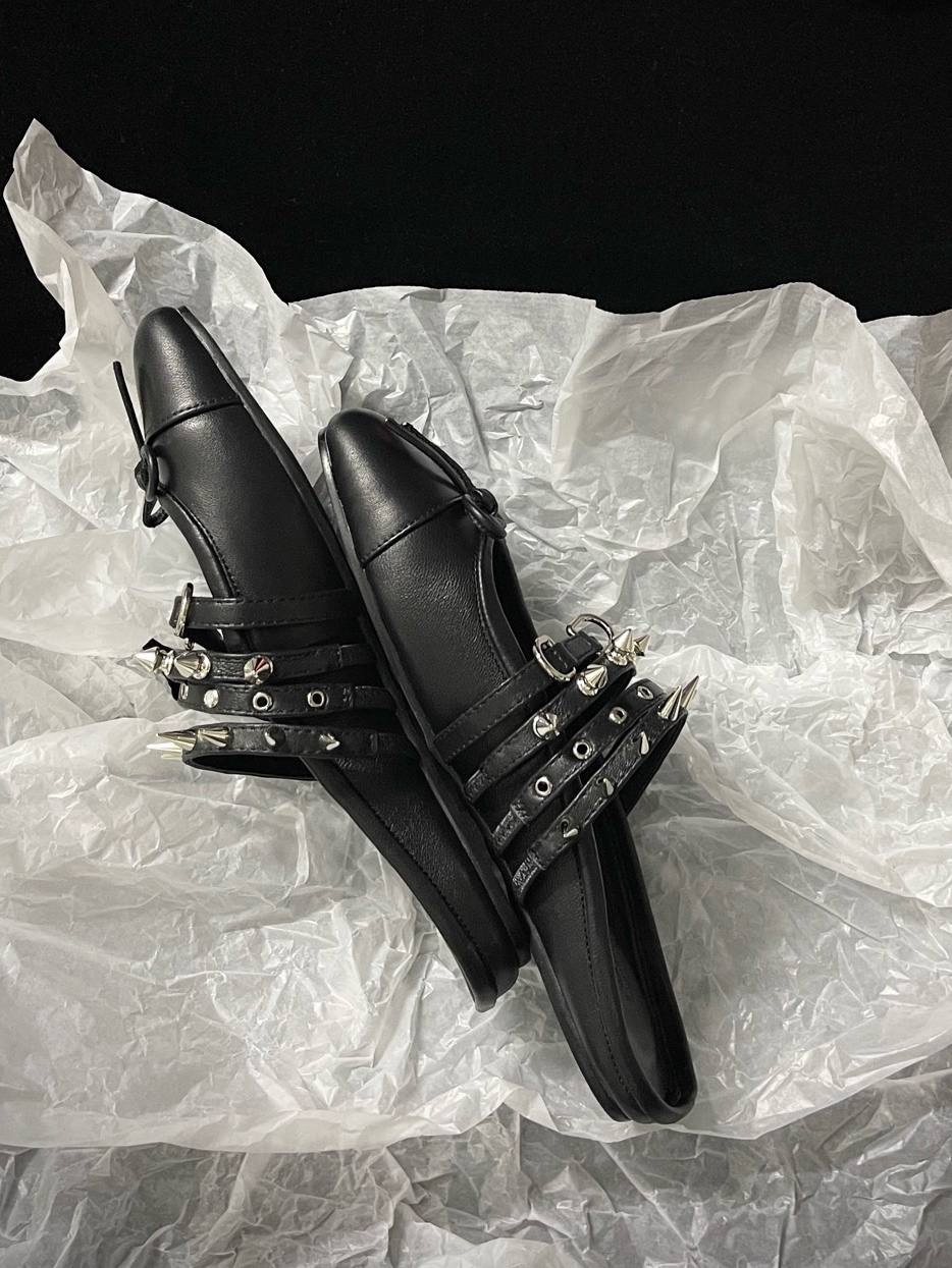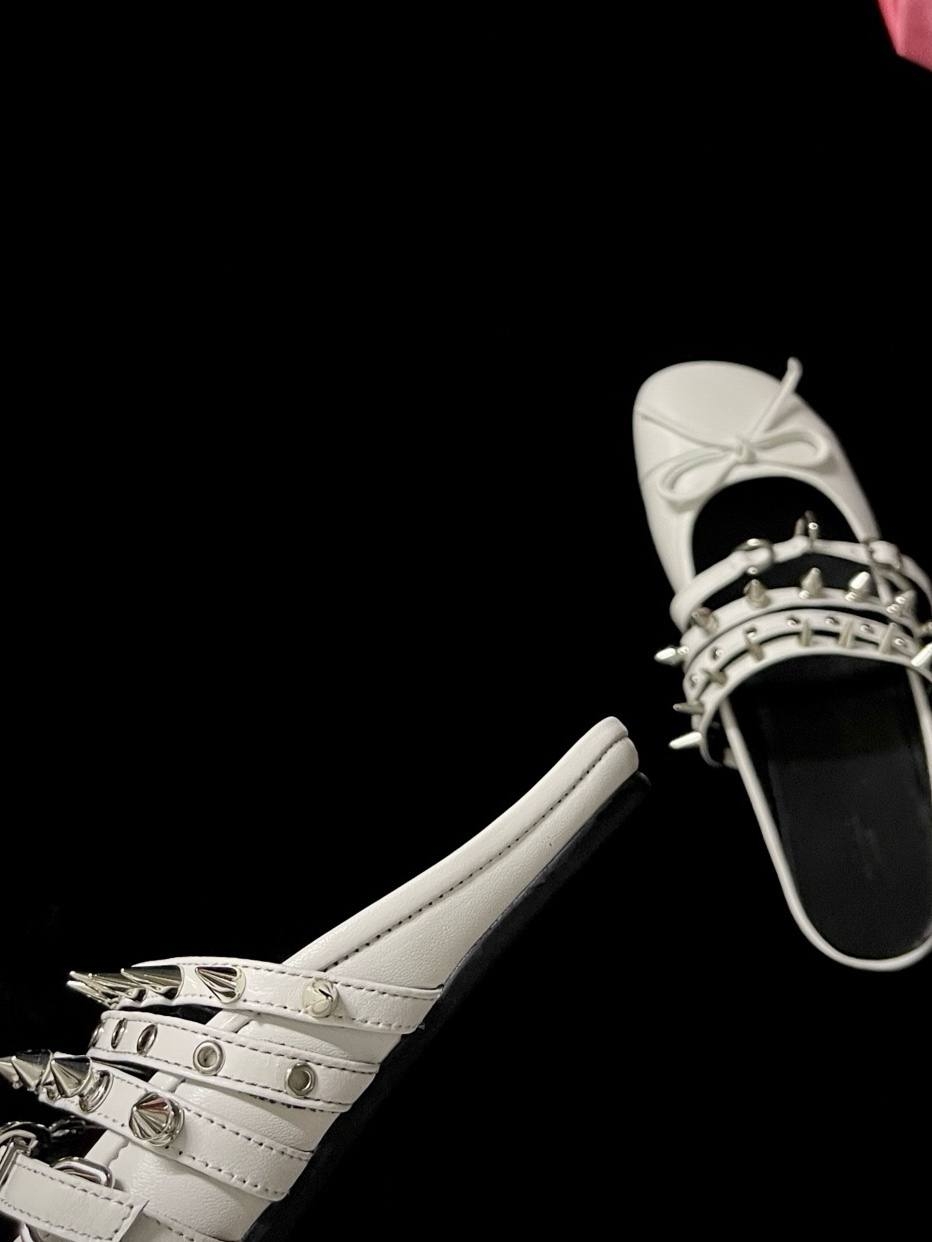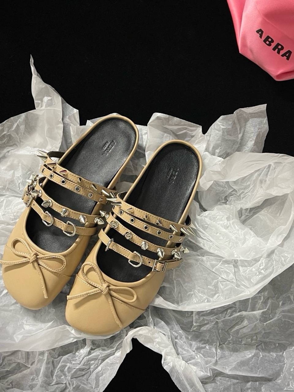 Балетки с шипами ABRA — один из самых узнаваемых силуэтов бренда. Эта модель из кожи в черно-белом цвете идеально подойдет для вечернего силуэта в эстетике бренда. Носите с другими вещами из коллекции ABRA.