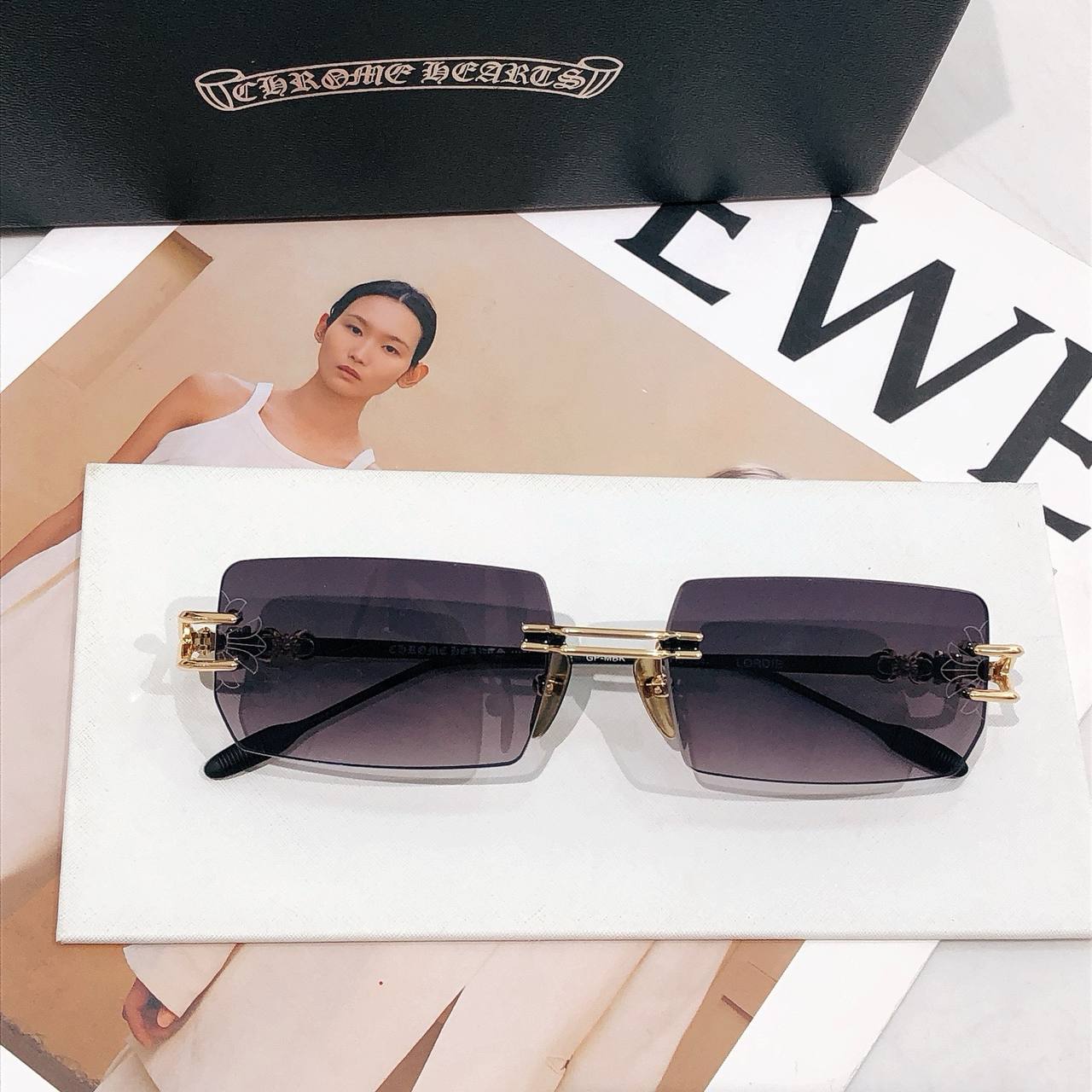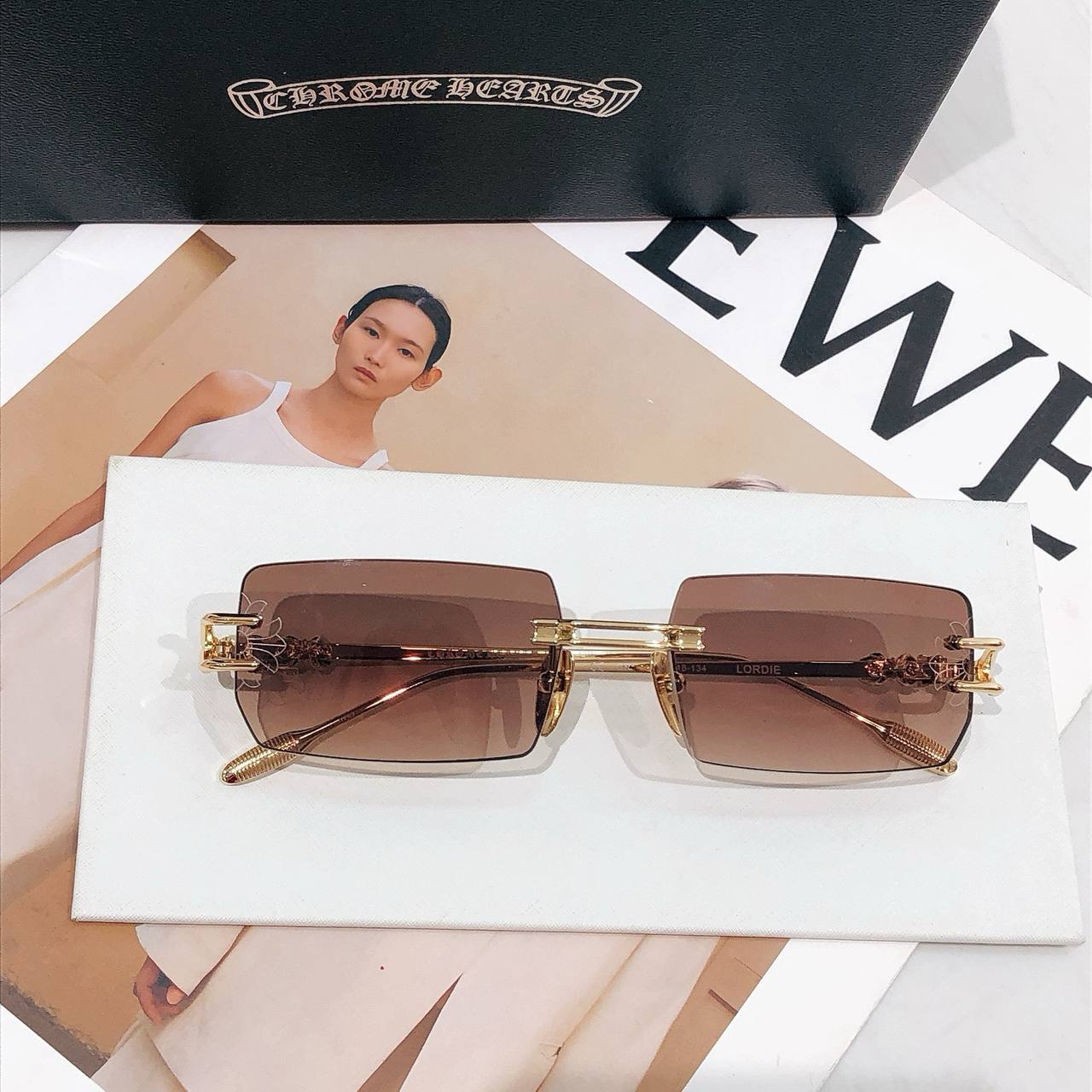 Солнцезащитные очки в прямоугольной оправе от Chrome Hearts имеют невероятно крутой ретро-стиль — легко представить, как их носит солистка рок-группы в 60-х. Они сделаны из золотистого металла и линзами разных цветов.