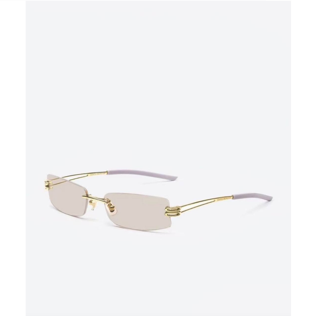 Солнцезащитные очки Gentle Monster BBB имеют узкую квадратную оправу, напоминающую о минималистичном стиле 90-х. Изготовленные из золотистого металла, они имеют тонкие дужки в цвет ацетатные наконечники заушников.