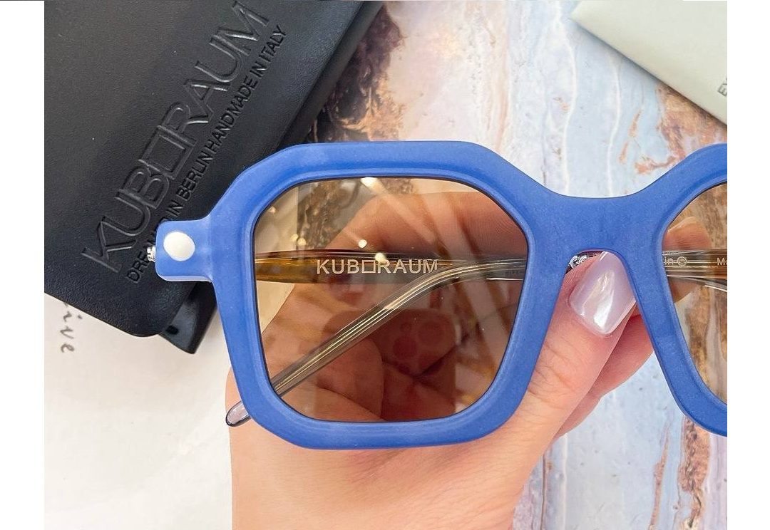 Квадратные очки Kuboraum P21 сделаны из пластика. Купить очки можно в четырех цветах: синий, хаки, чёрный, белый.