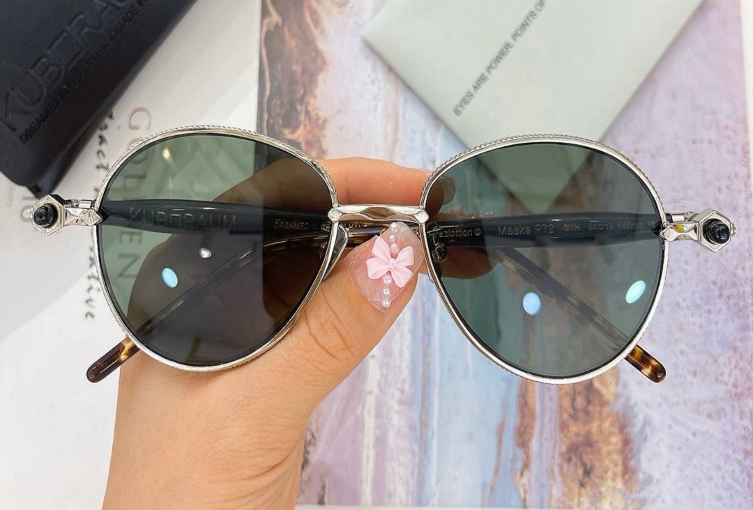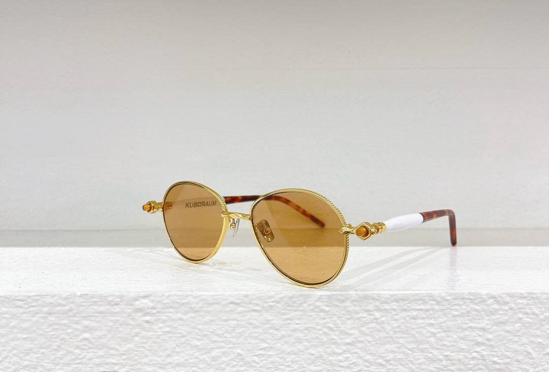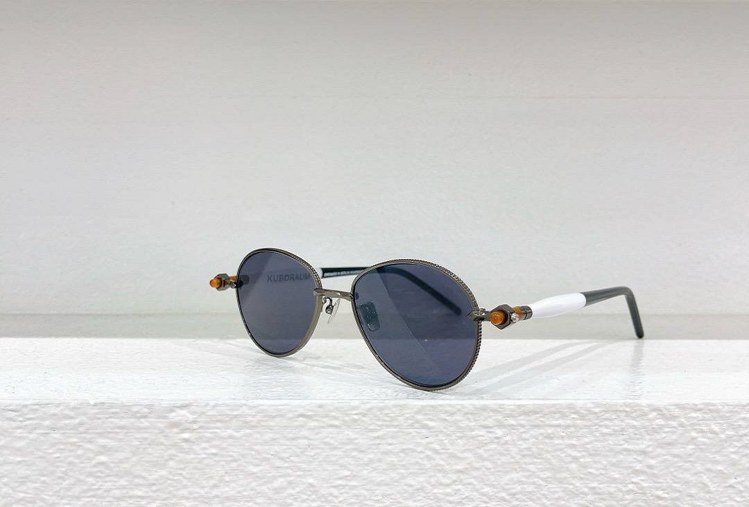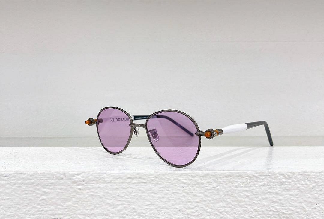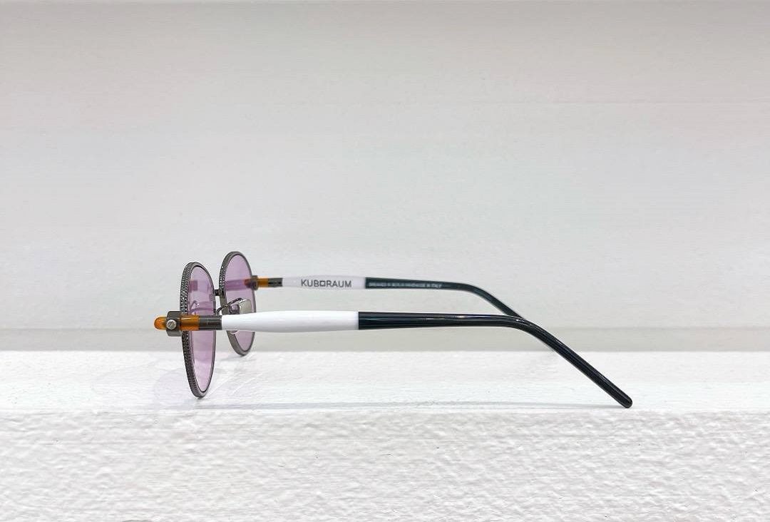Очки от солнца Kuboraum сделаны из пластика в круглой форме. Купить очки можно в пяти цветах: серый, зеленый, черный,фиолетовый, золотой.