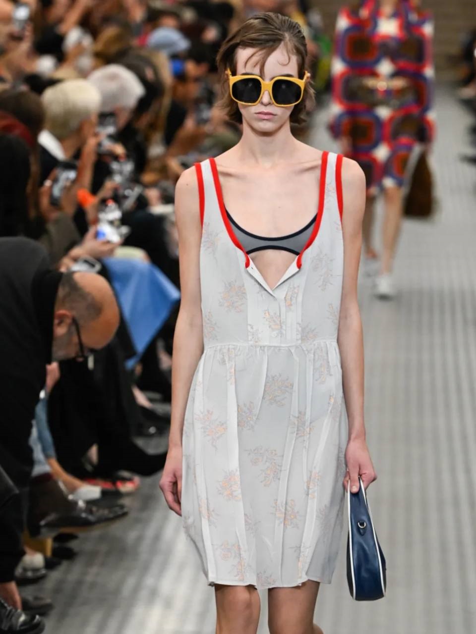 Солнцезащитные очки Miu Miu имеют смелую оправу в форме буквы D, которая изогнута, чтобы следовать контурам вашего лица. Они сделаны из глянцевого ацетата и имеют тонкие дужки, украшенные золотистым логотипом.