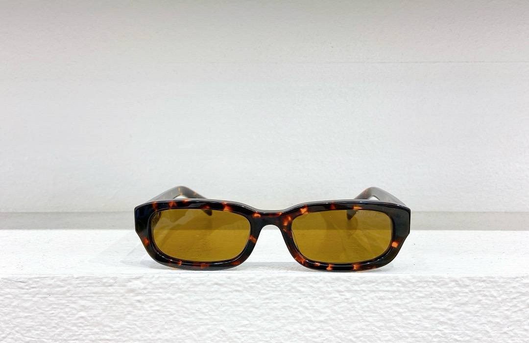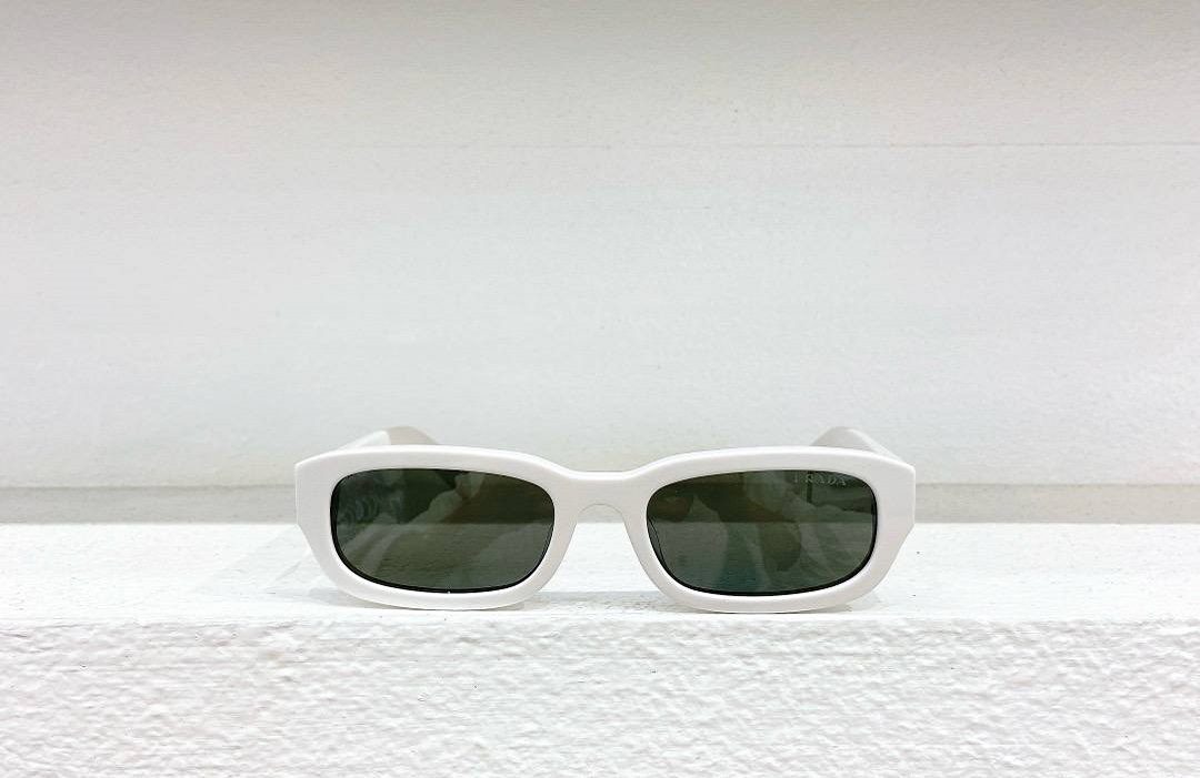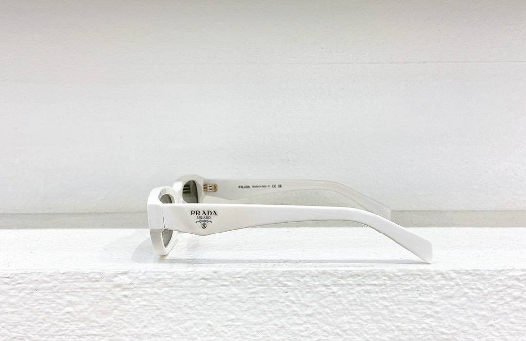 Очки Prada сделаны в овальной форме с широкой оправой. Купить очки можно в трех цветах: роговый, черный, белый.