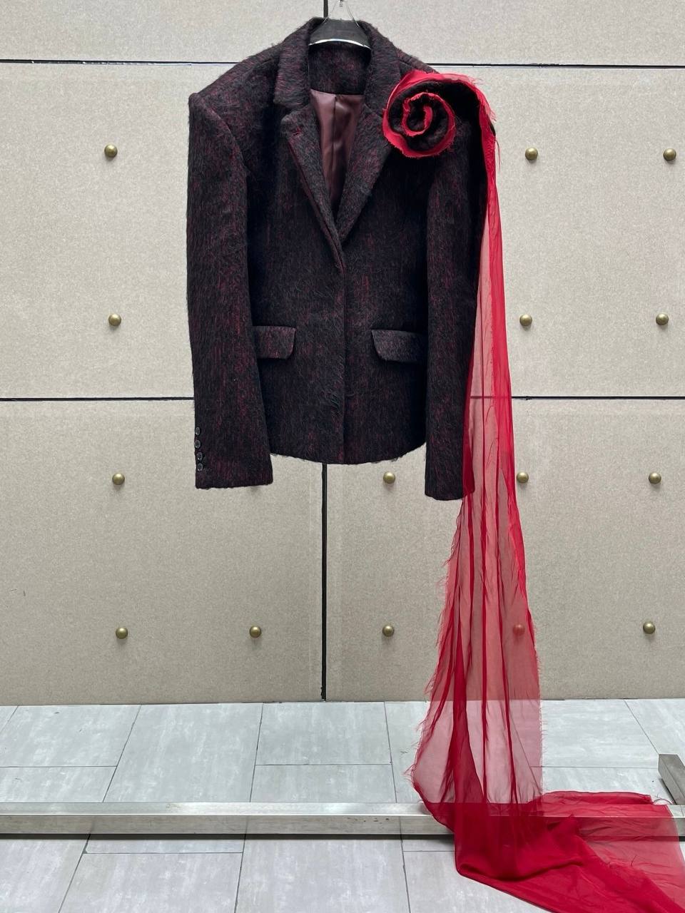 Пиджак с аппликацией DIDU сделан из шерсти. Пиджак с воротником и длинными рукавами украшен цветком на плече. Купив пиджак вы дополните свой образ.