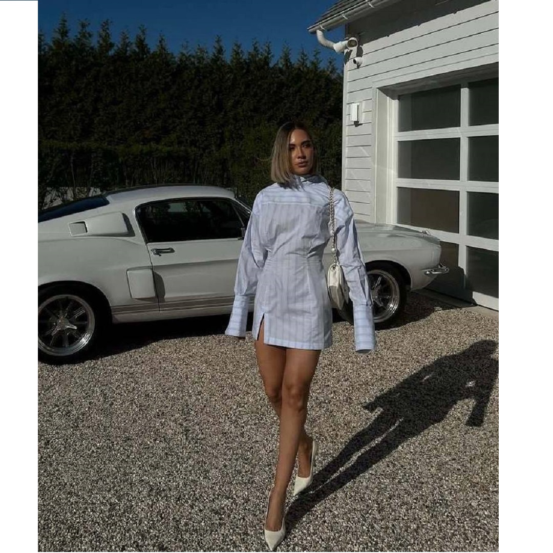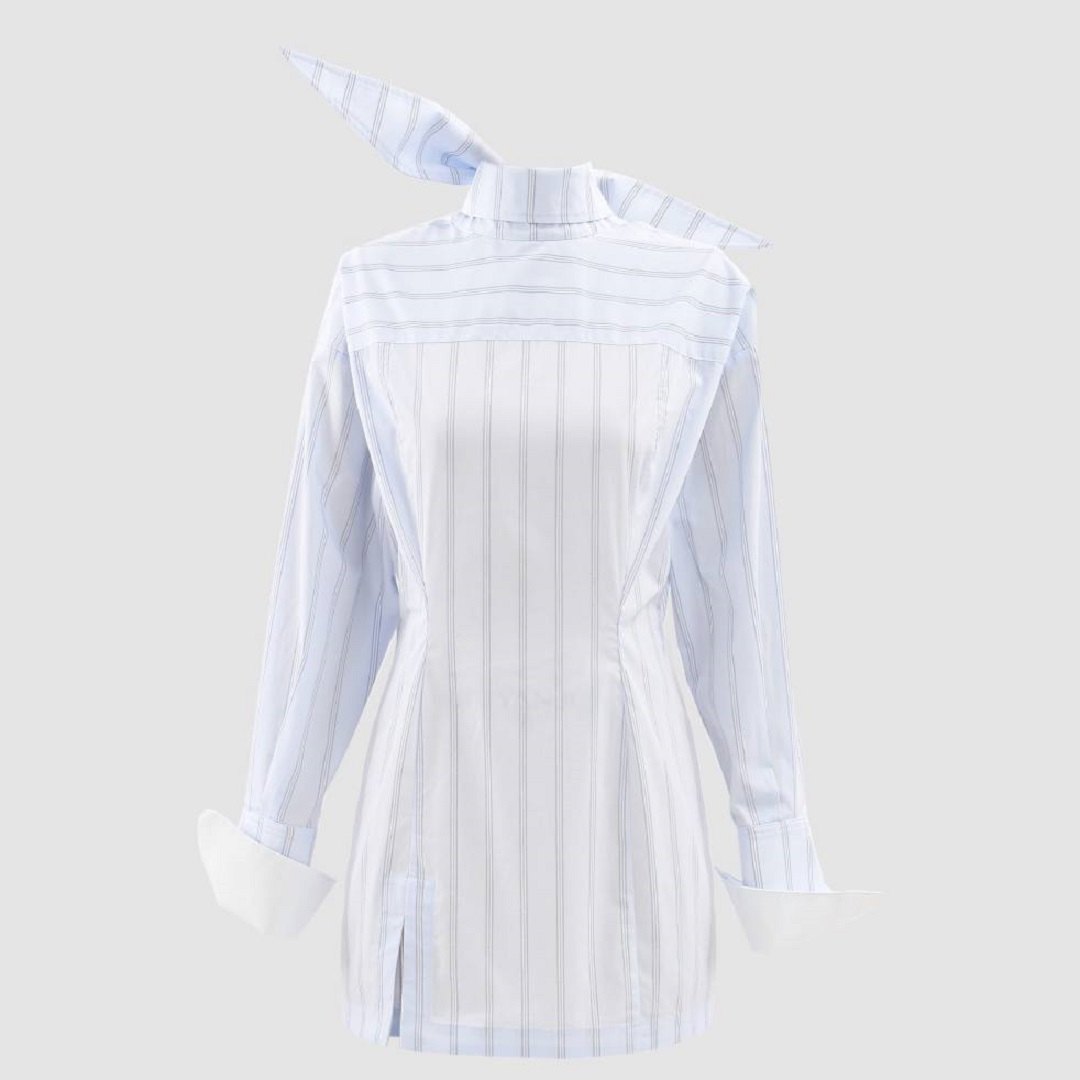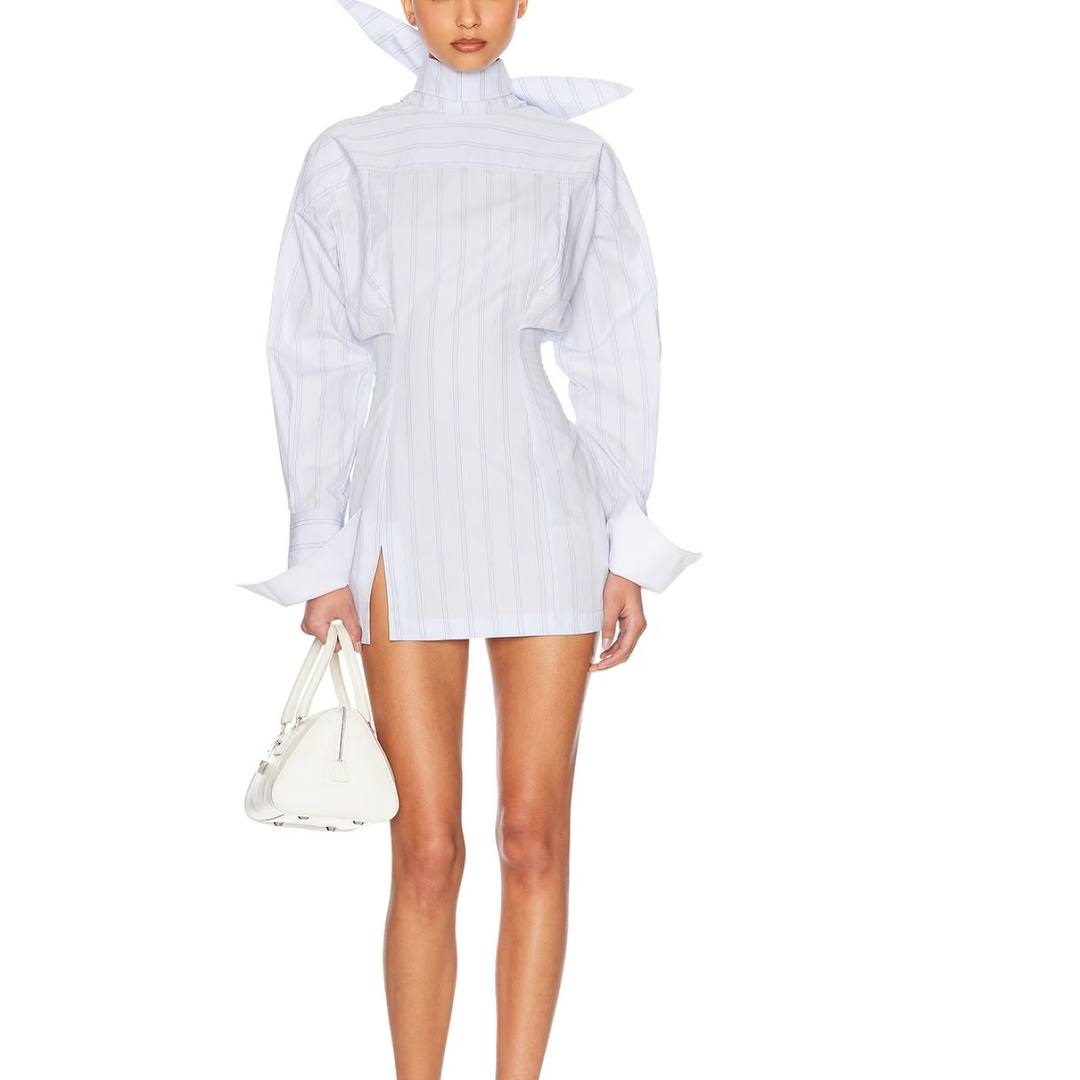 Платье HELSA выполнено из натурального хлопка в белом цвете. Платье мини с длинными рукавами имеет вид рубашки, приталенное и украшено разрезом сбоку.