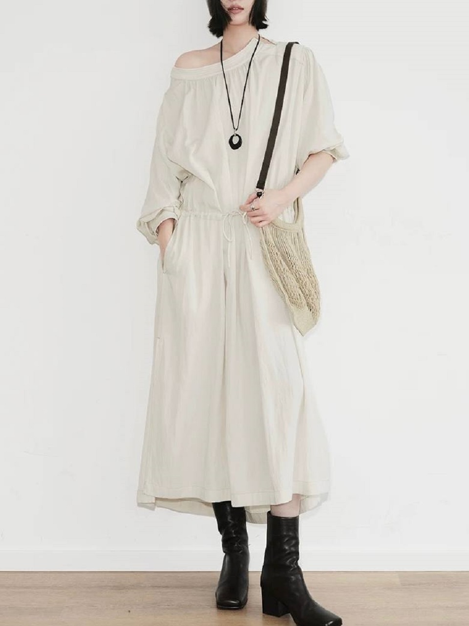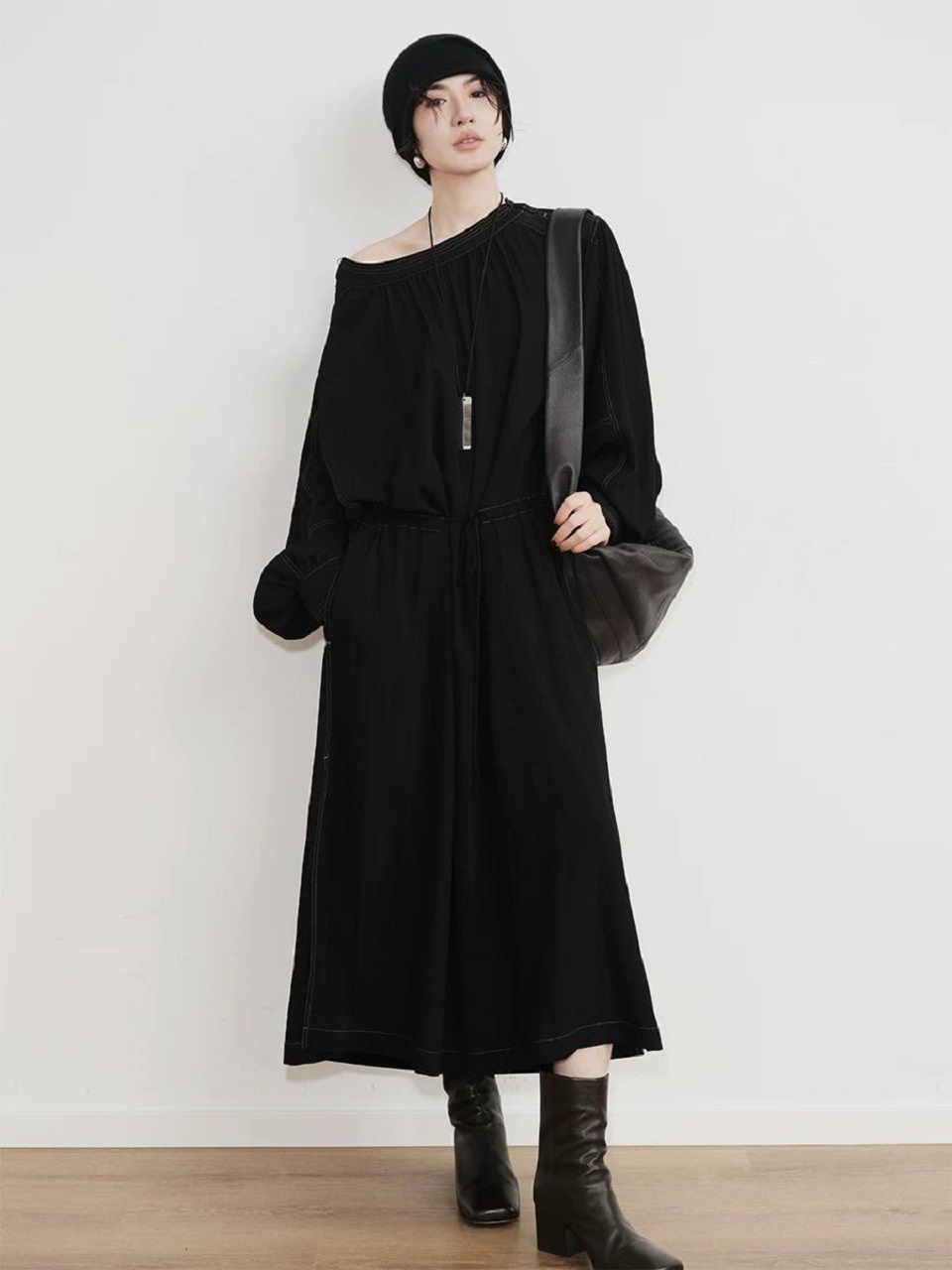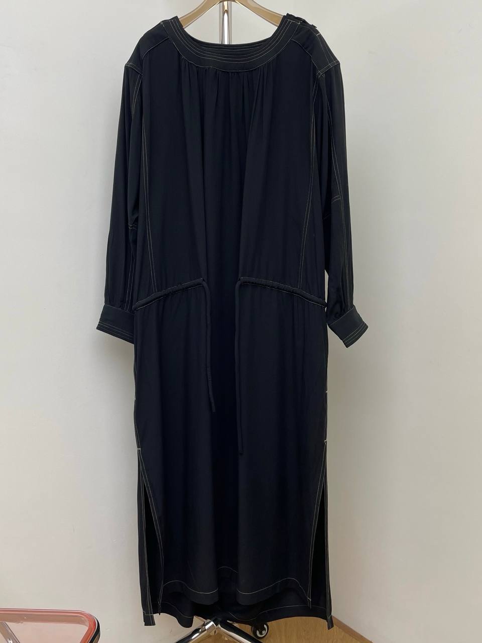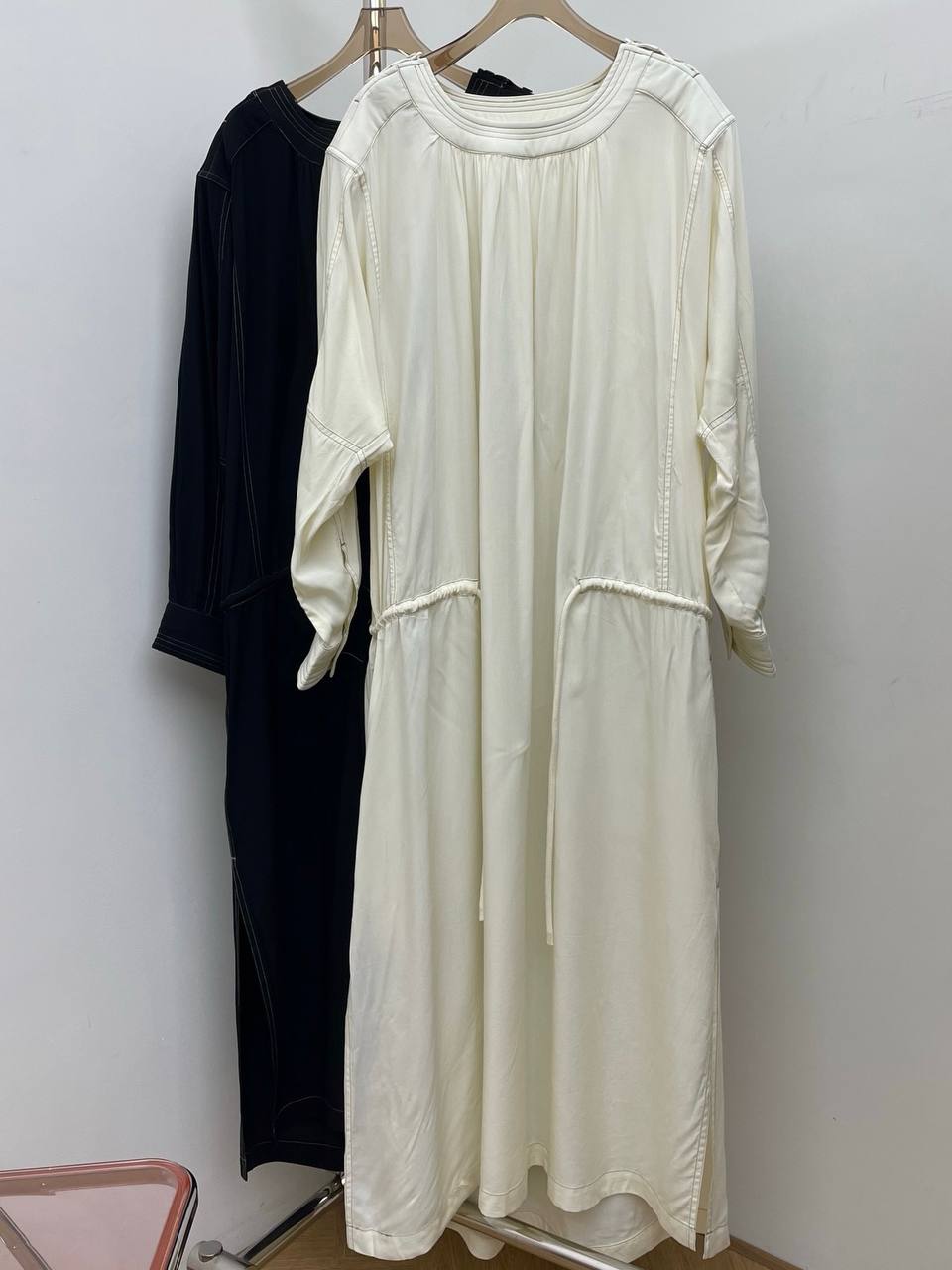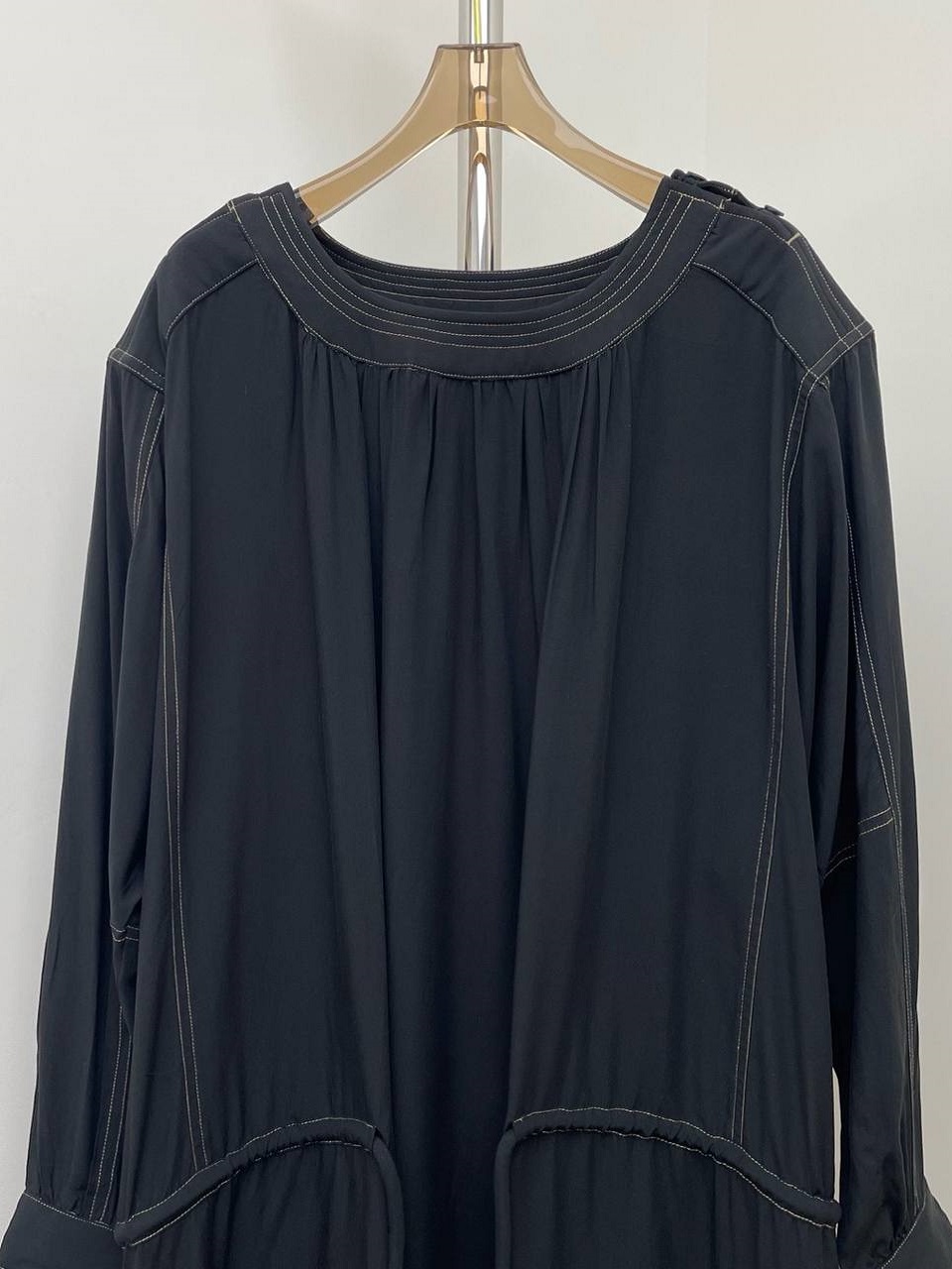 Платье Lemaire выполнено из черного и молочного натурального хлопка. Оно свободное в виде футболки. Носите вместе с ним босоножки или кроссовки.