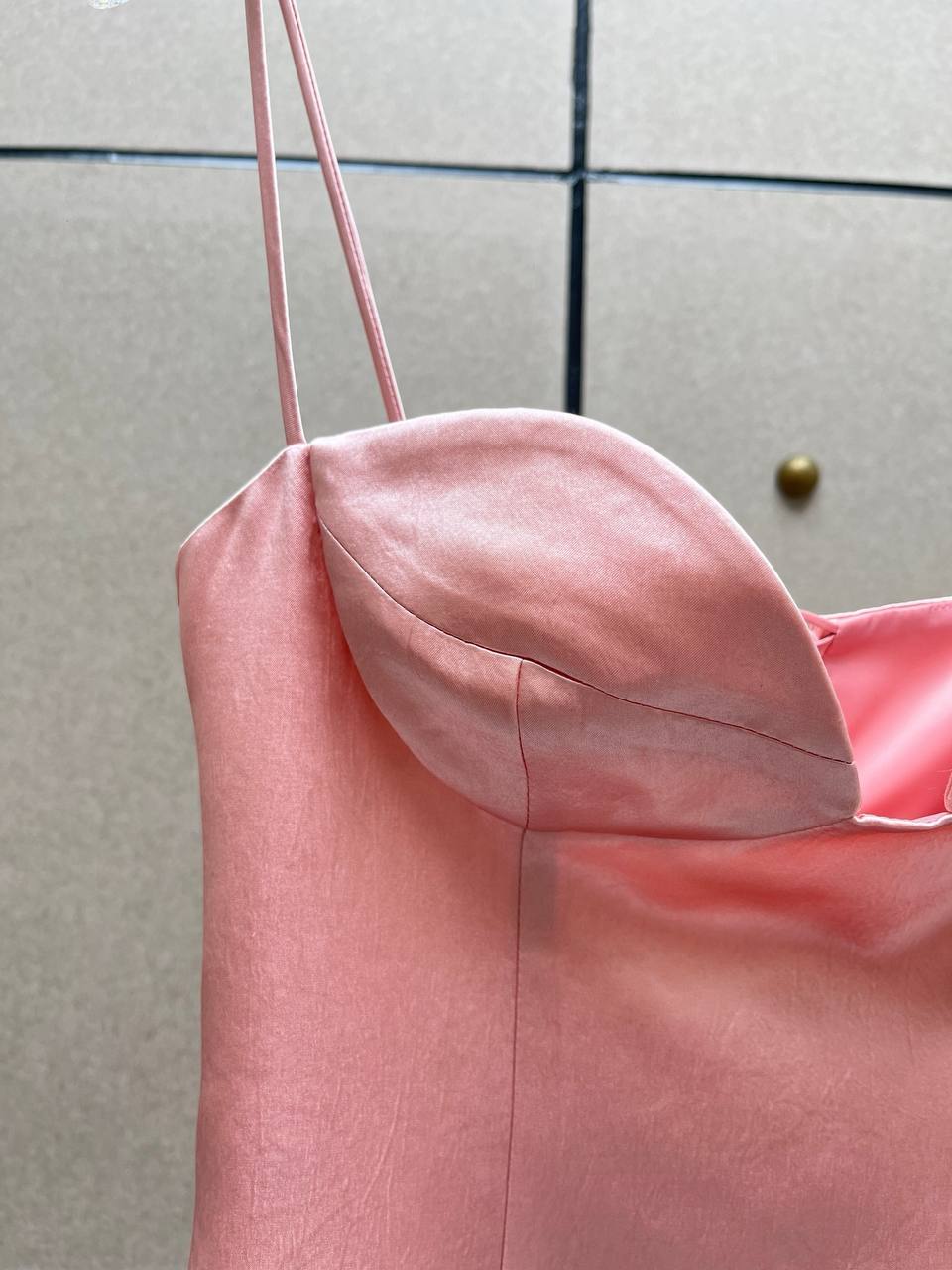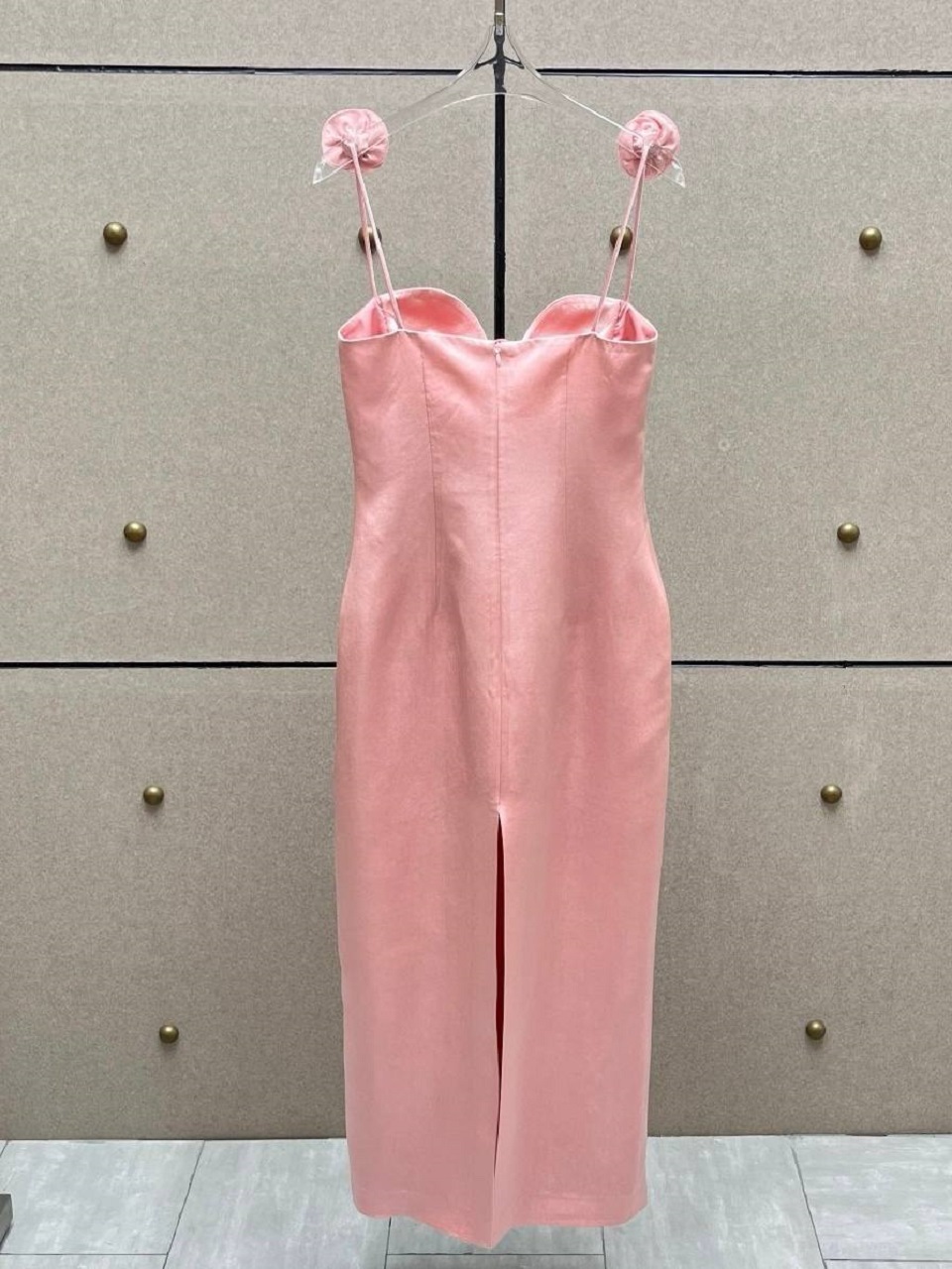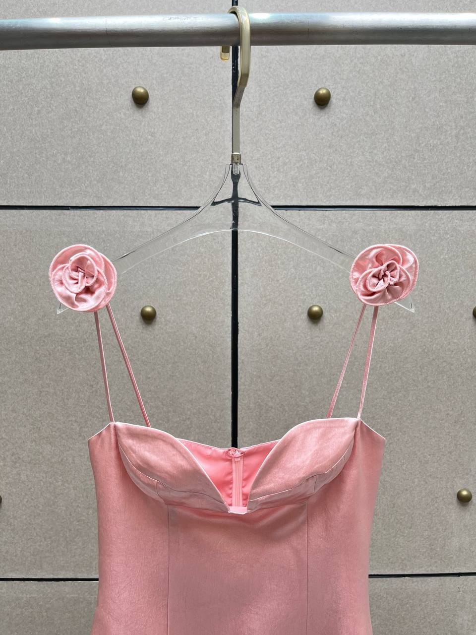 Платье Magda Butrym миди выполнено в розовом и белом цвете. Сверху лиф с косточками и вырезом бюстье, бретели украшены цветами.