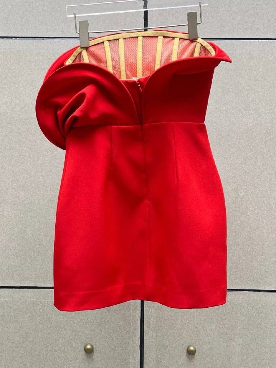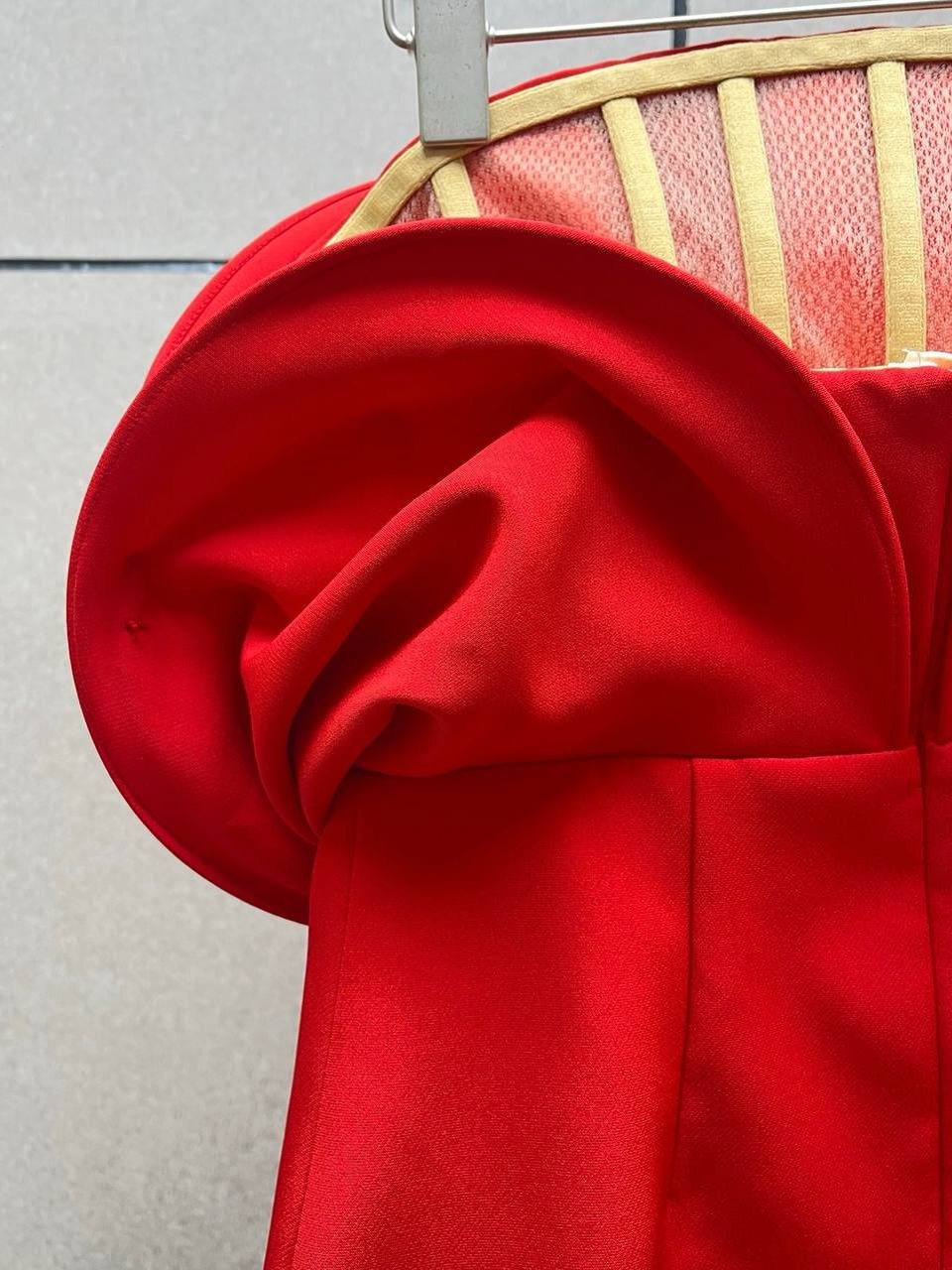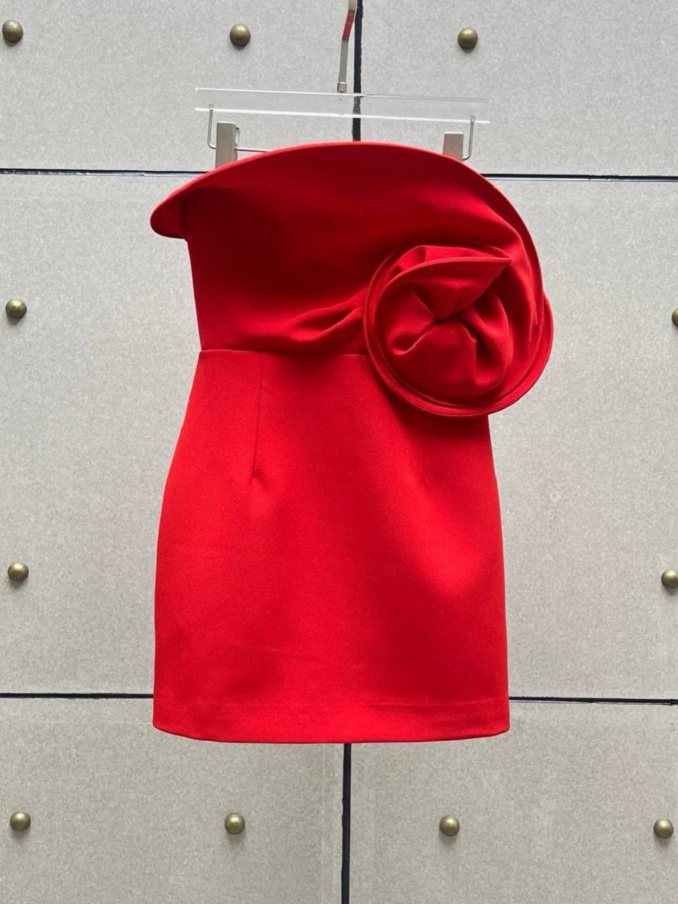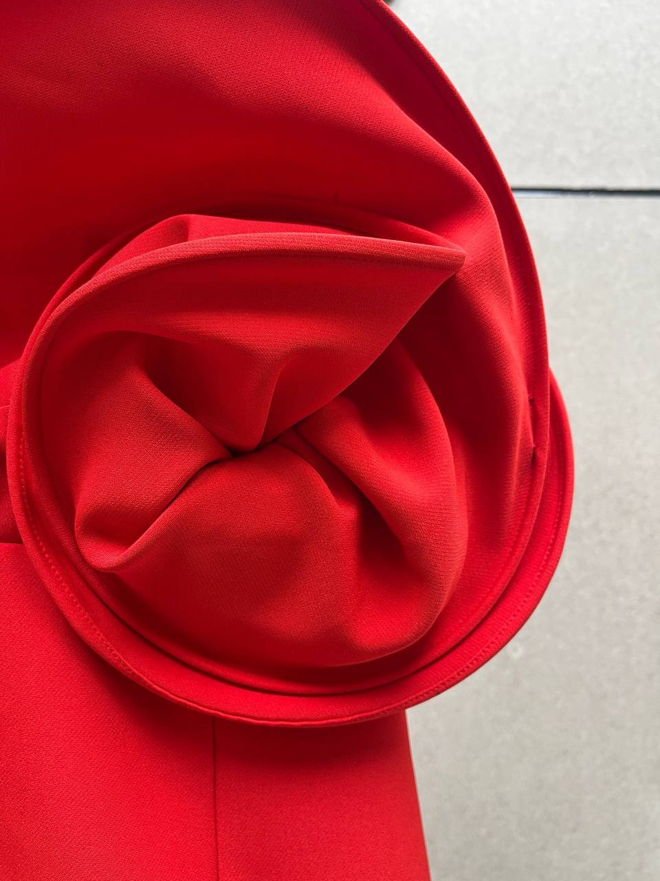 Платье Magda Butrym сделано из нейлона и спандэкса. Данная модель платья короткая красного цвета украшено огромным цветком из ткани. Купив платье вы дополните свой вечерний и повседневный образ.