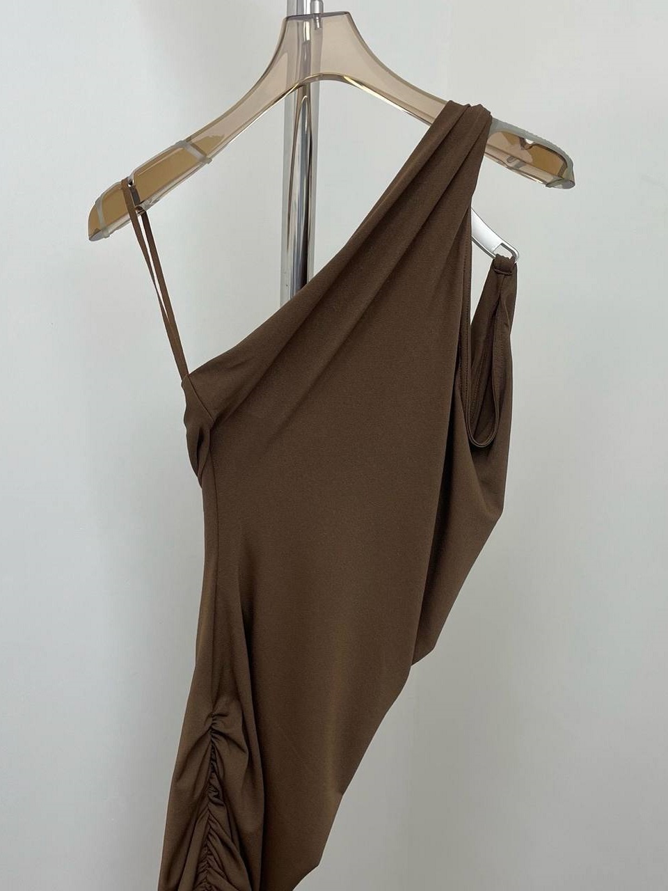 Платье Рика Оуэнса с капюшоном ниспадает от плеч до скрученного большого бокового разреза. Оно сделано из мягкого джерси и имеет облегающий крой. Дополните его простыми сандалиями и висячими серьгами.