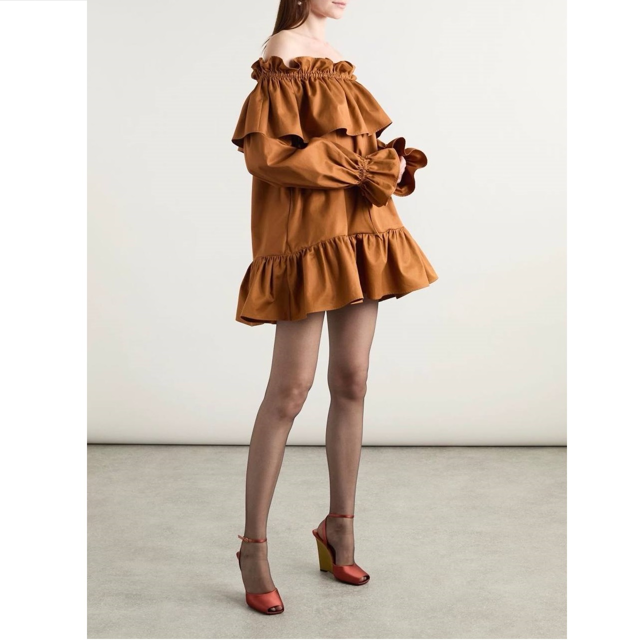 Платье Saint Laurent имеет оборчатый верх, который прекрасно сочетается с расклешенным мини-низом. Оно сделано из натурального хлопка, прочной ткани, которая так хорошо держит форму. Подчеркните свой образ новинкой коллекции FW 25.Стилисты Lacosa рекомендуют к данному товару