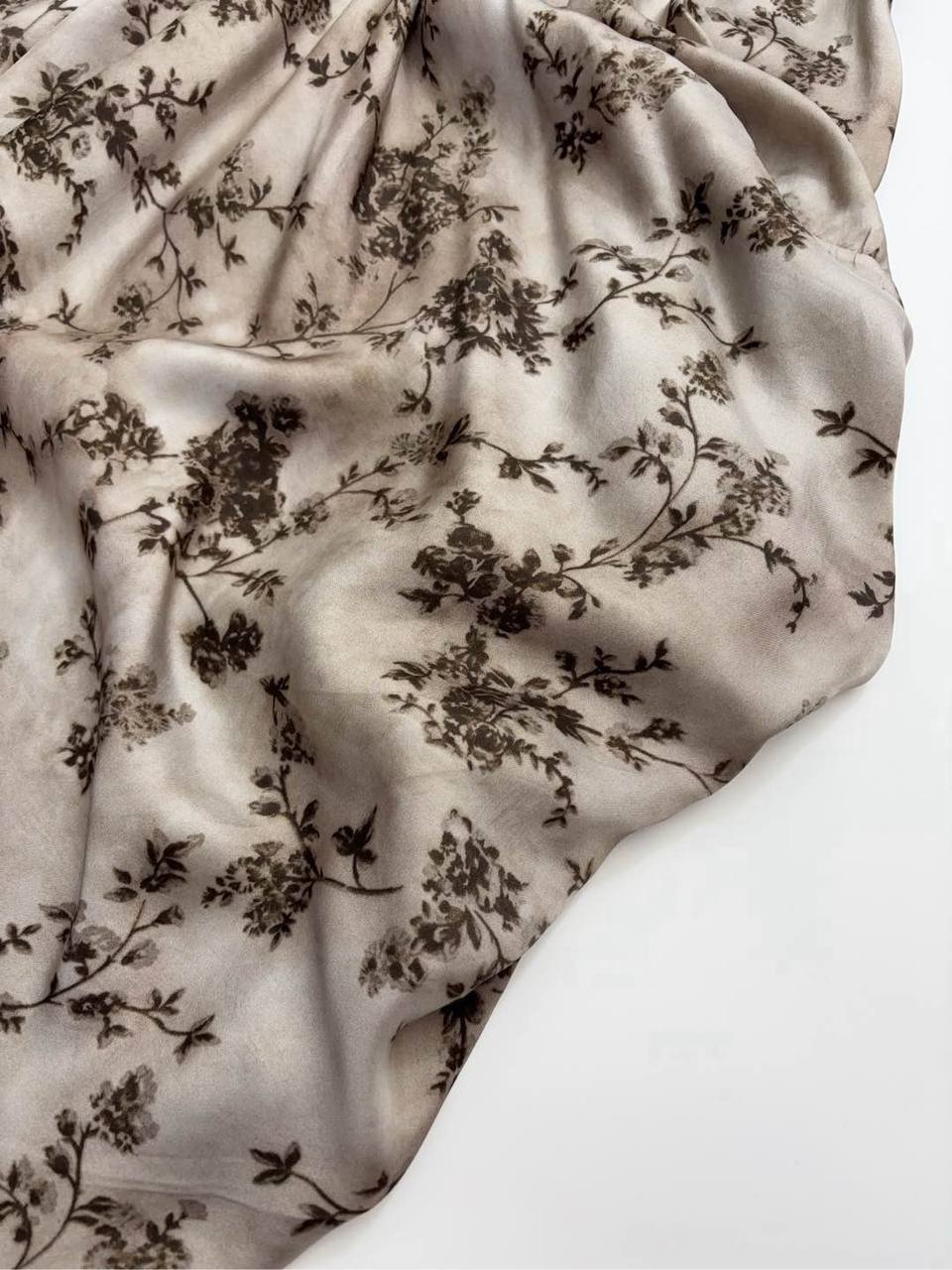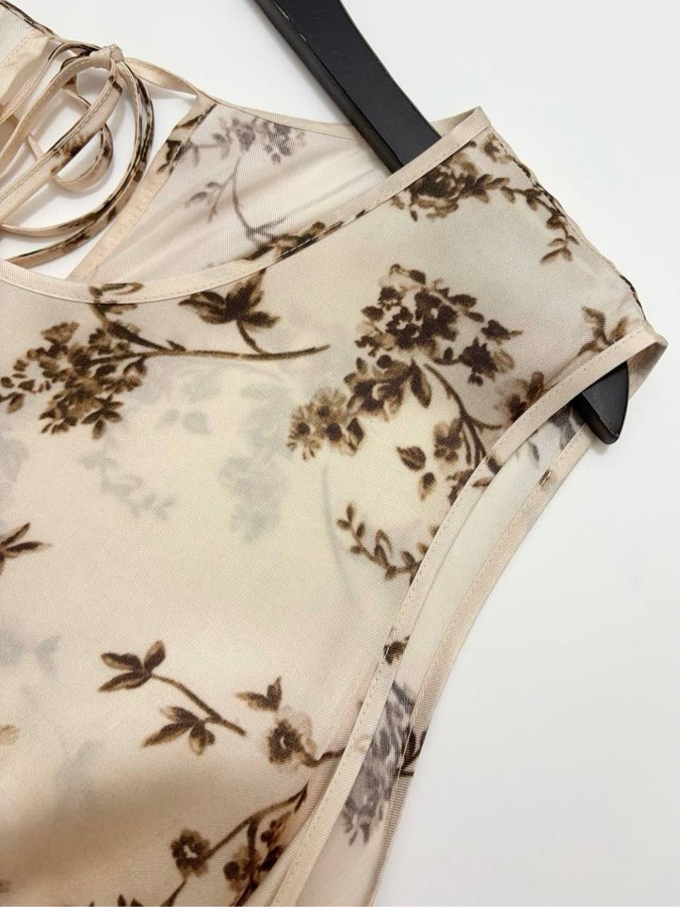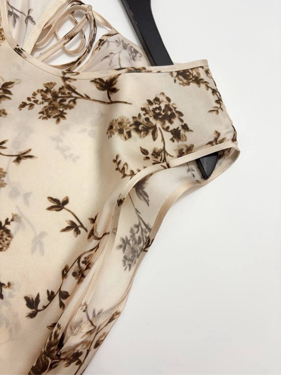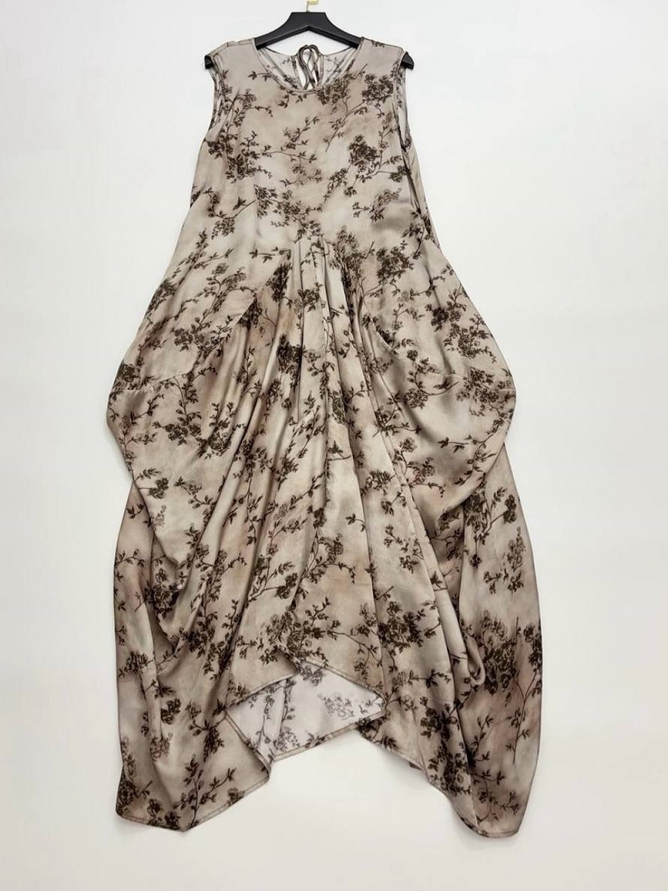 Лёгкое платье с цветочным принтом из шелковистой смешанной ткани на основе вискозы. Слегка расклешённая модель без рукавов, глубокий овальный вырез.