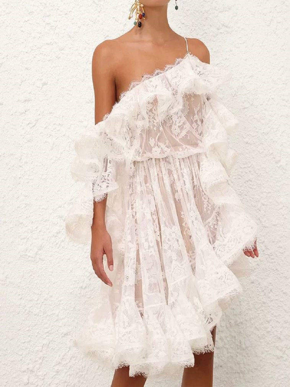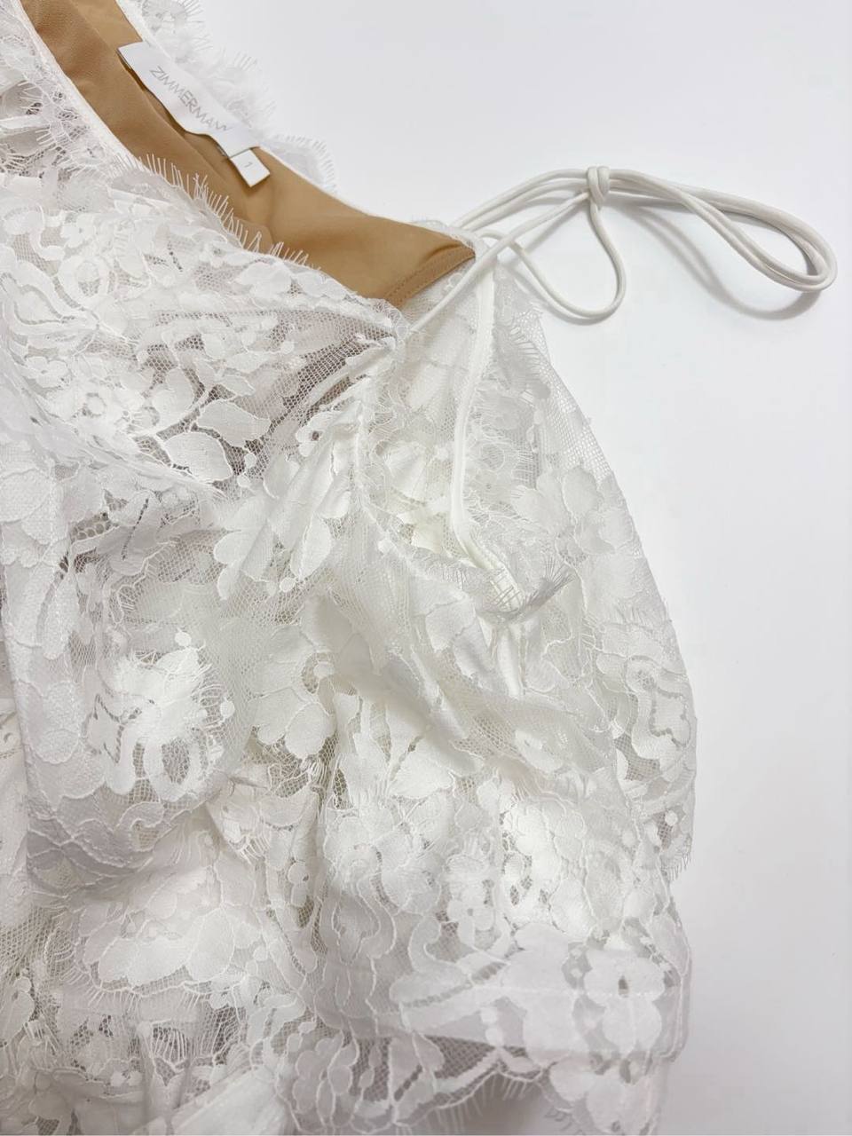 Асимметричное платье от Zimmermann — это изысканное воплощение современной элегантности и непринужденного шарма. Изготовленное из струящейся вискозы с шелковистой текстурой, оно привлекает внимание своим нежным видом и кружевом.