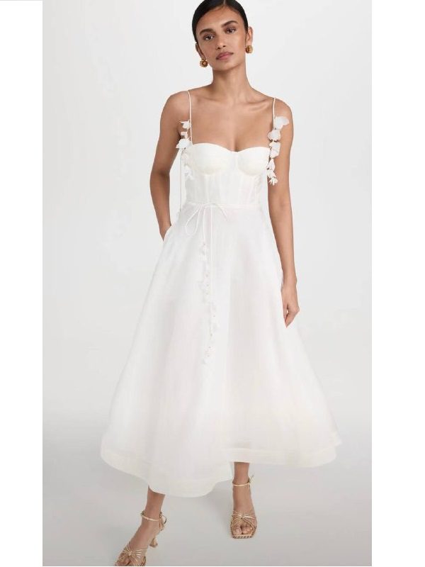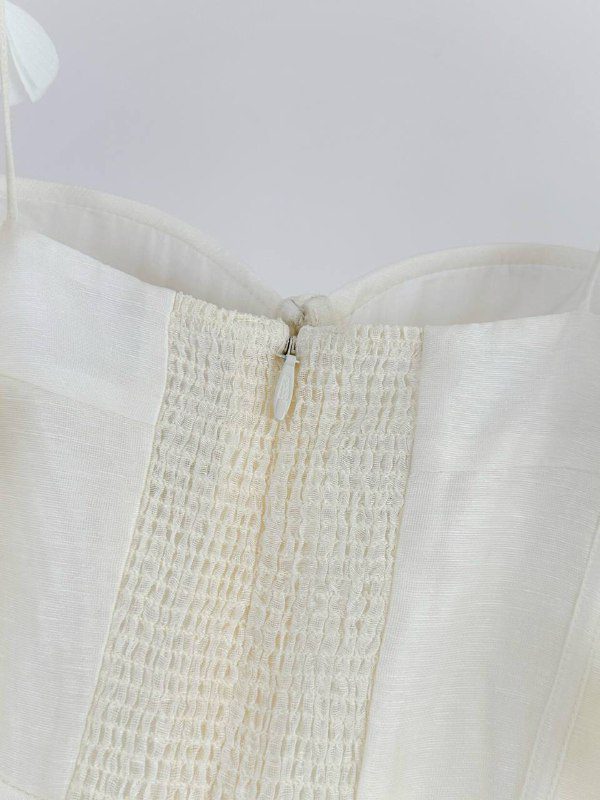 Платье Zimmermann Picnic с цветочками сделано из льна и шелка. Данная модель бретелях с цветами, верх сделан корсетом, длинной платье ниже колен. Купить платье Zimmermann можно в двух цветах: белый, чёрный.