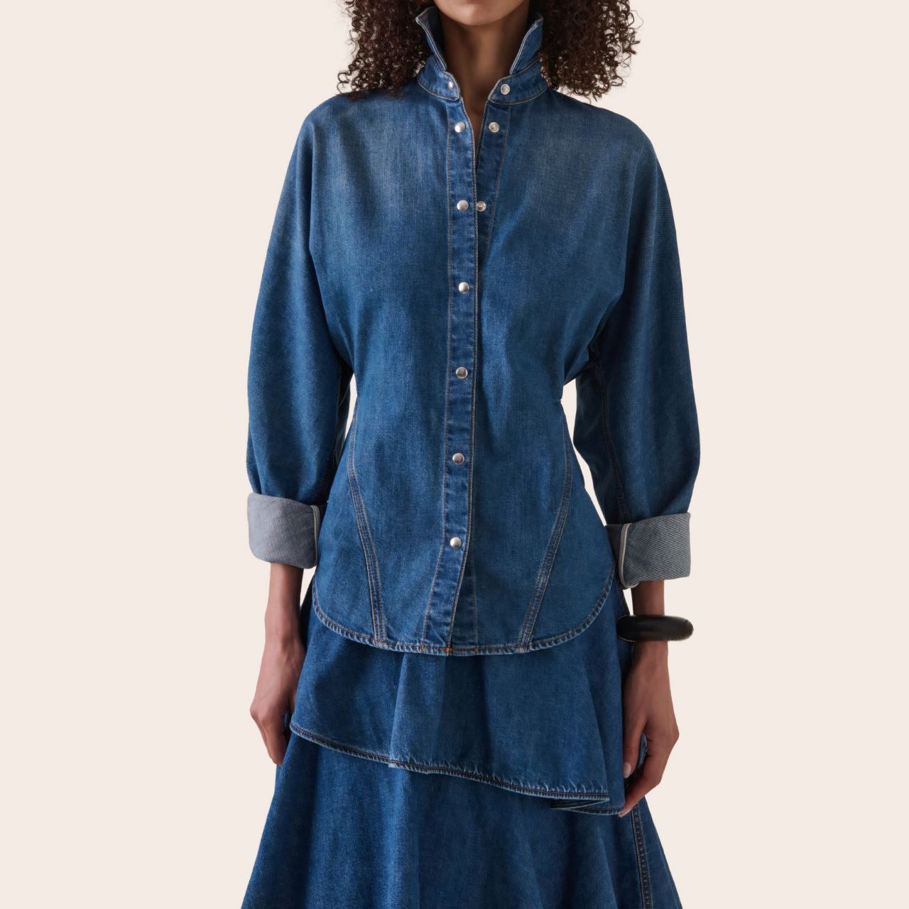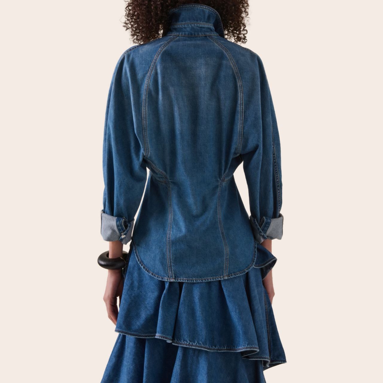 Только Alaia может превратить джинсовую рубашку в произведение искусства. Эта рубашка из хлопка имеет сужение, которое создает скульптурный силуэт. Носите её с джинсами в тон или юбкой.