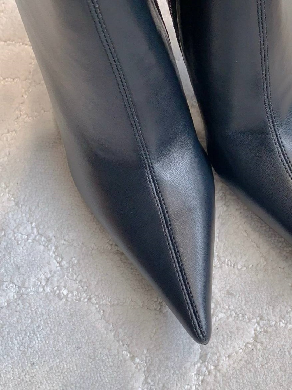 Достаточно одного взгляда на удлиненный «ножевой» мысок этих ботинок «Avenue», чтобы любой поклонник бренда понял, что это Balenciaga. Они изготовлены из гладкой кожи, которая хорошо облегает ногу, и имеют каблук. Носите их с чем угодно: от узких джинсов до струящихся платьев миди.