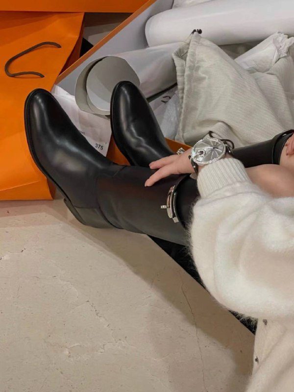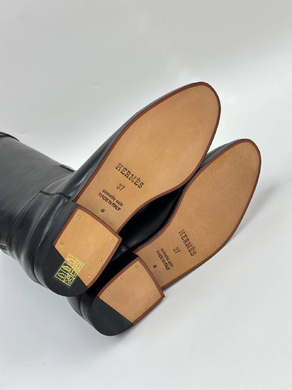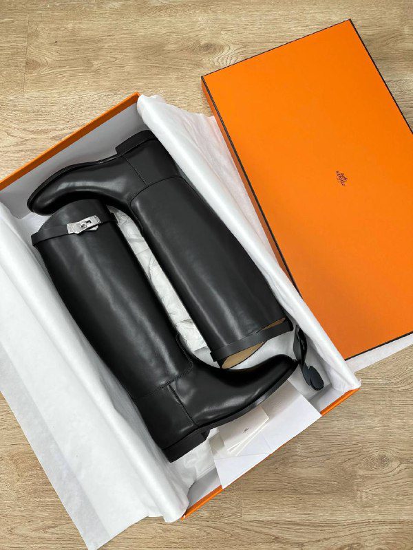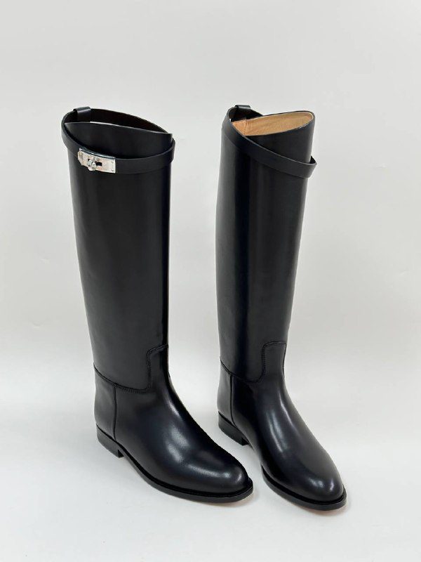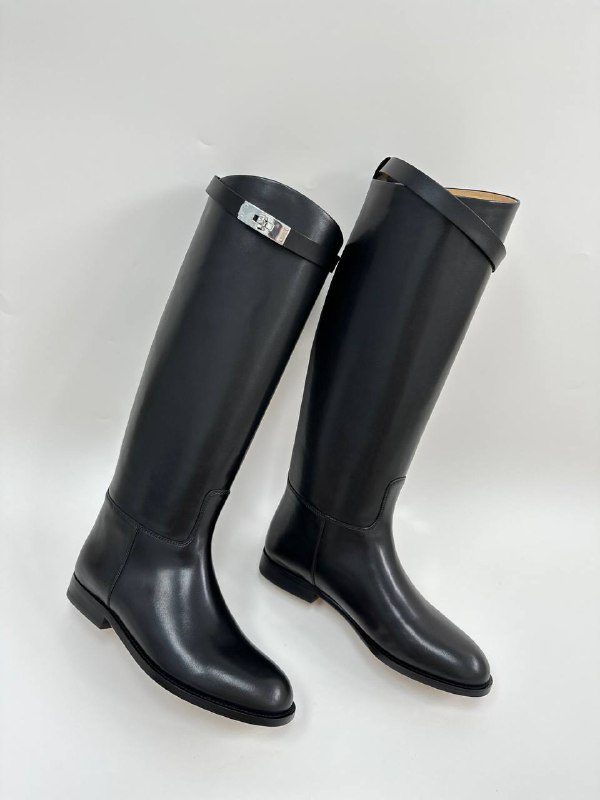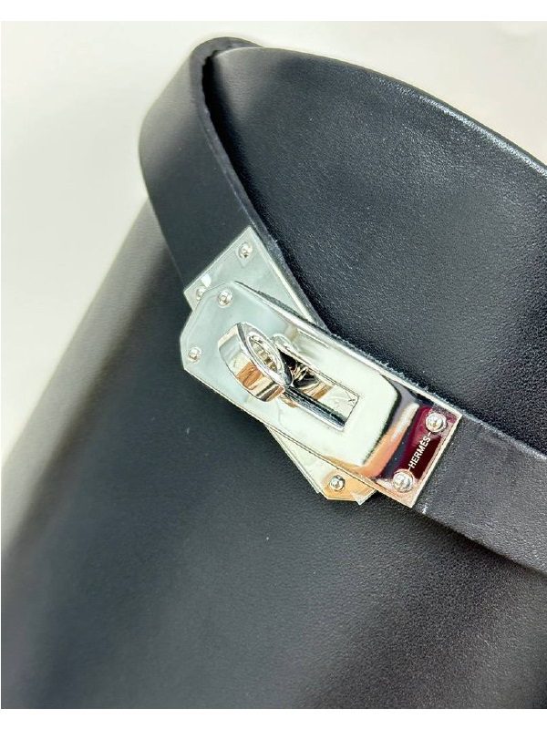 Женские сапоги Hermes сделаны из натуральной кожи. Данная модель в черном цвете с закругленным носком и до колен украшена ремешком сверху. Купив сапоги Hermes вы дополните свой образ.