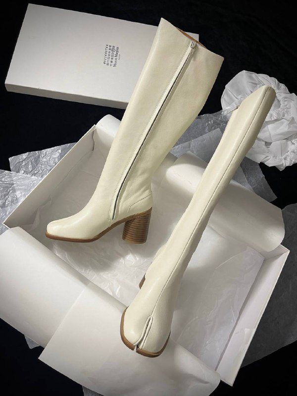 Сапоги Tabi Maison Margiela на каблуке сделаны из натуральной кожи на каблуке. Данная модель обувь высокая и имеет расцветку в двух цветах: молочный, черный. Купив сапоги вы дополните свой повседневный и вечерний образ.