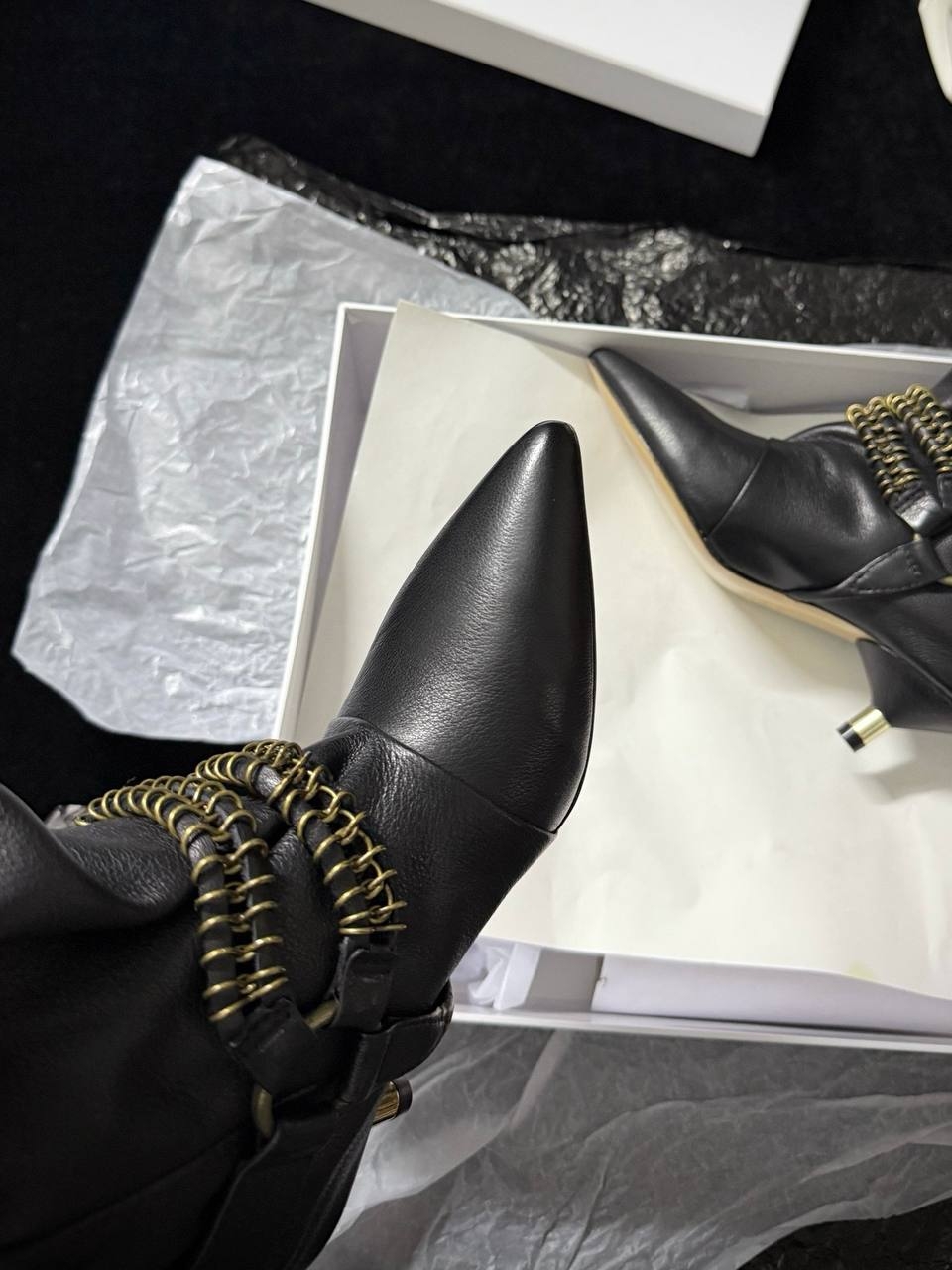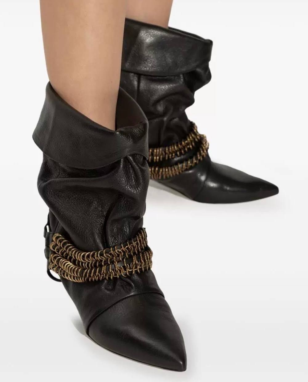 Сапоги Isabel Marant Edrik выполнены из натуральной кожи в черном цвете. Они имеют заостренный носок и небольшой каблук. Украшены сапоги цепочкой впереди.
