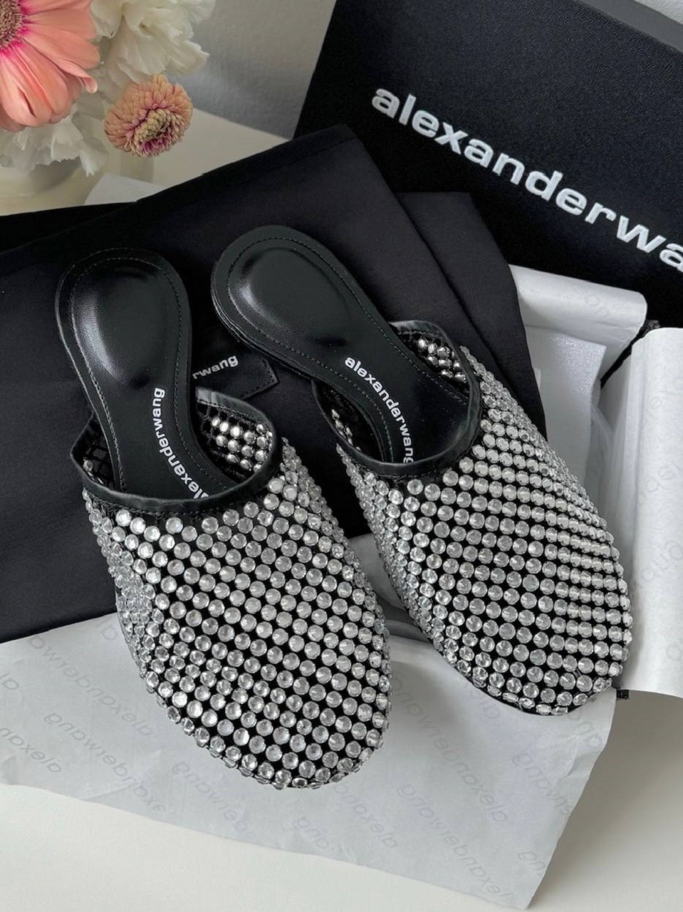 Шлёпанцы Alexander Wang с кристаллами