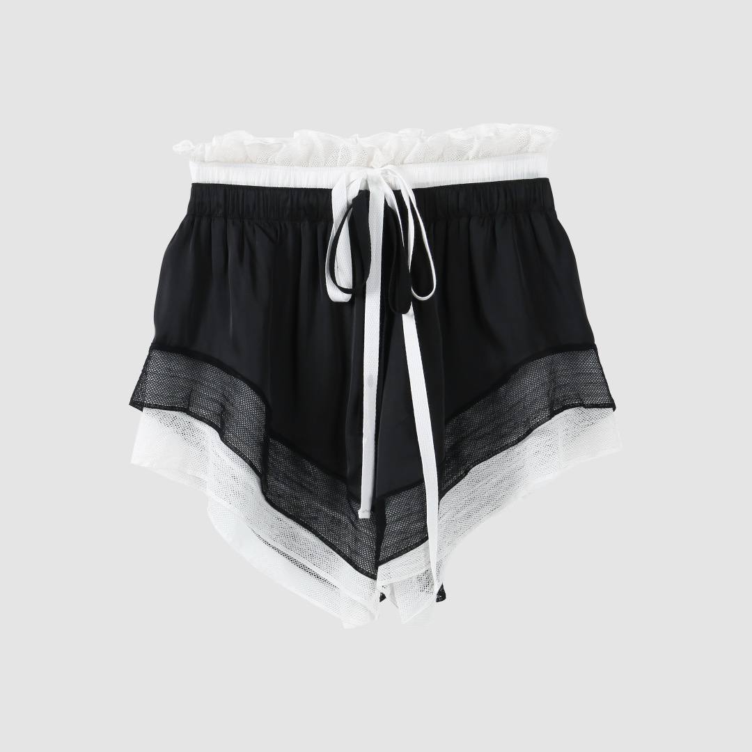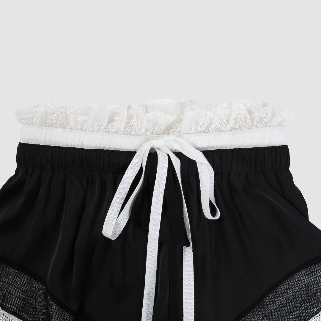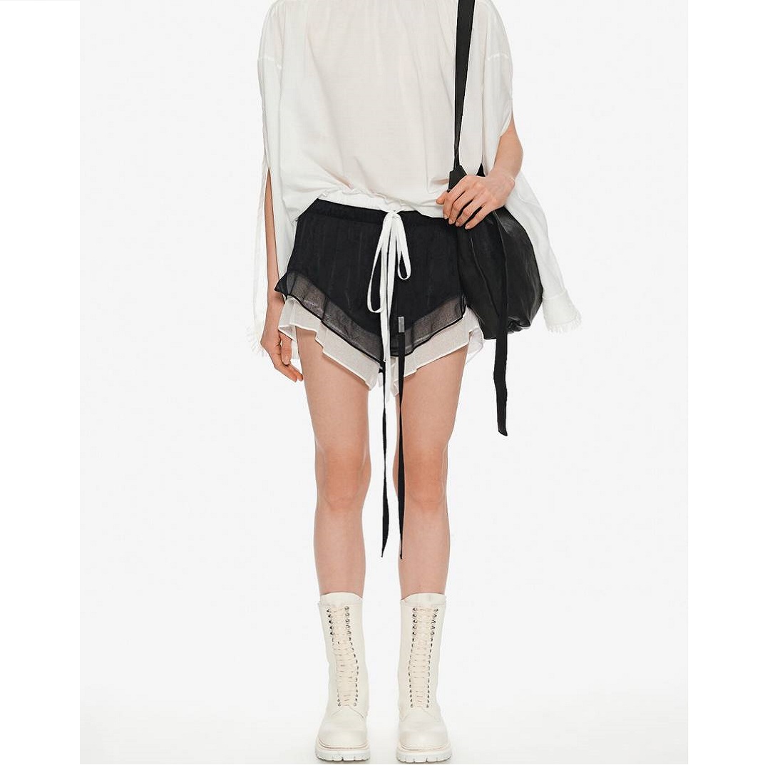 Шорты Ann Demeulemeester выполнены в черном с белым цветом. Они легкие с завышенной талией и на завязках. Носите шорты с футболками и кроссовками.