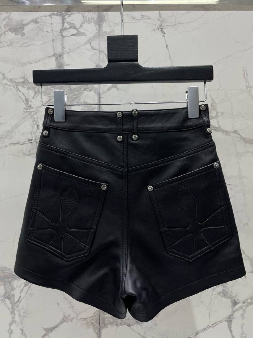 Шорты Chrome Hearts сшиты из черной джинсовой ткани, имеют высокую талию, накладные карманы. Носите их с объемными топами бренда или такими же романтичными майками.