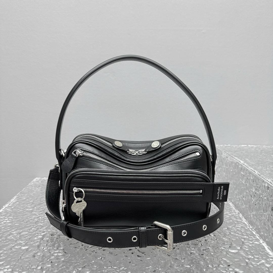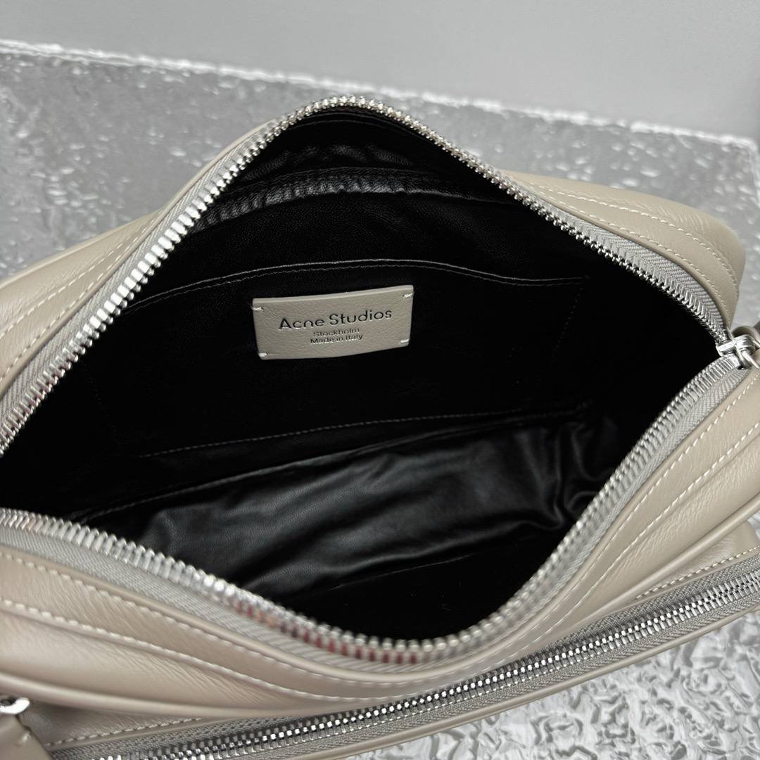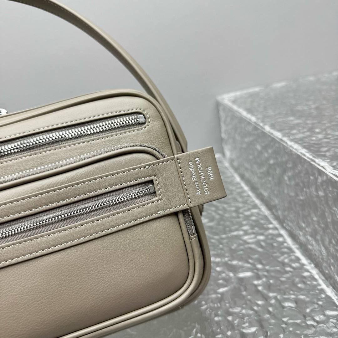 Впервые представленная на подиуме весна 25 года, сумка Acne Studios среднего размера вдохновлена функциональным дизайном винтажных сумок для фотоаппаратов. Изготовленная из текстурированной кожи, она украшена выгравированным логотипом ключа на переднем кармане на молнии и имеет размер, позволяющий вместить небольшую бутылку воды, книгу и солнцезащитные очки.