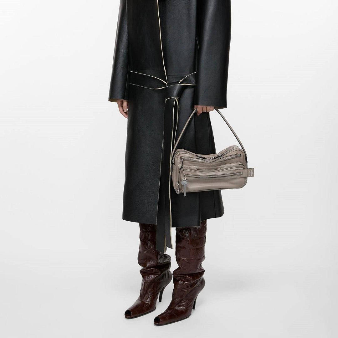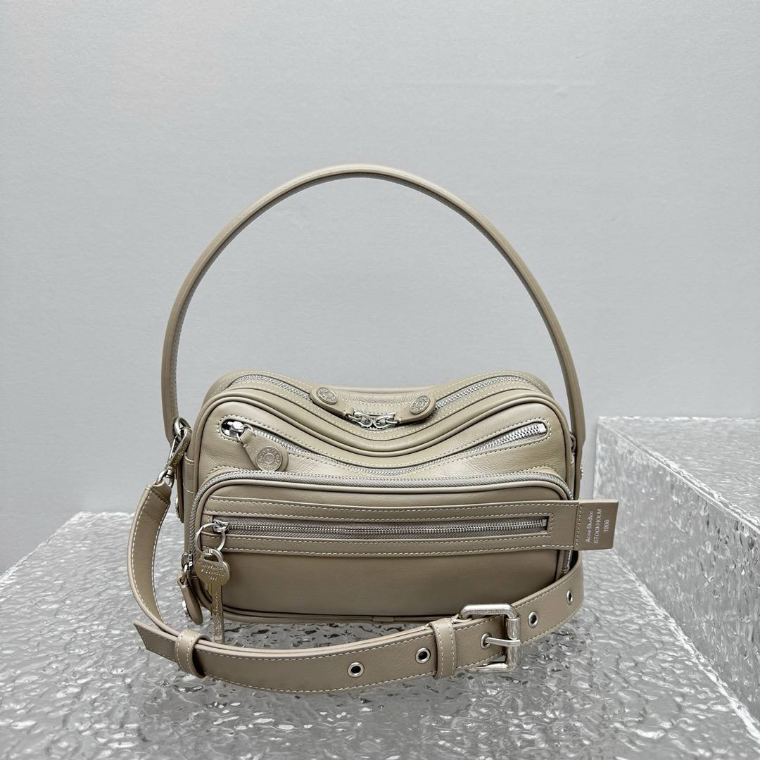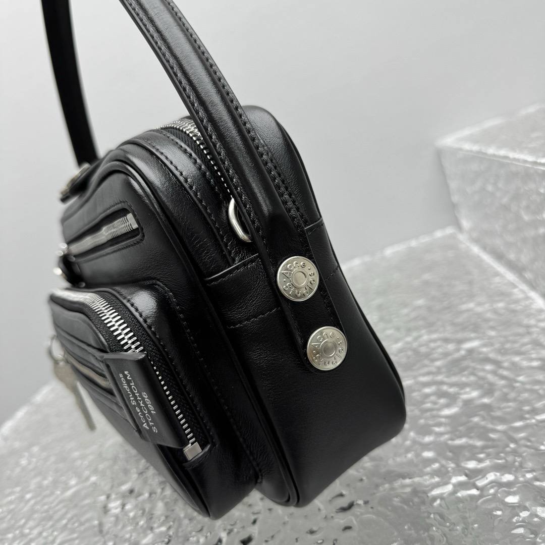 Впервые представленная на подиуме весна 25 года, сумка Acne Studios среднего размера вдохновлена функциональным дизайном винтажных сумок для фотоаппаратов. Изготовленная из текстурированной кожи, она украшена выгравированным логотипом ключа на переднем кармане на молнии и имеет размер, позволяющий вместить небольшую бутылку воды, книгу и солнцезащитные очки.
