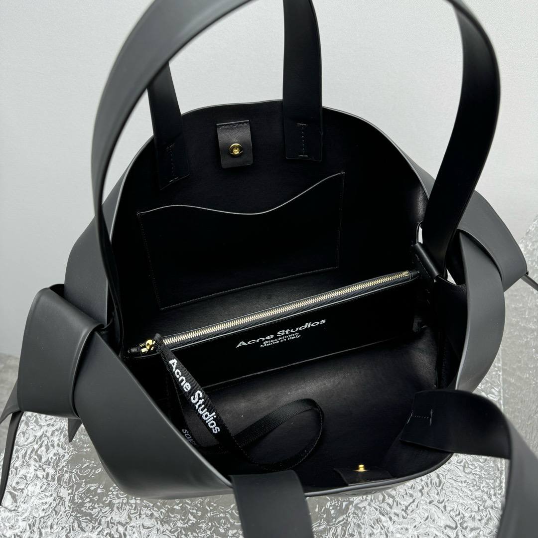 Мягкая сумка Acne Studios сделана из натуральной кожи в черном цвете и латте. Данная модель имеет прямоугольную форму закрывается на магниты, украшена логотипом бренда.