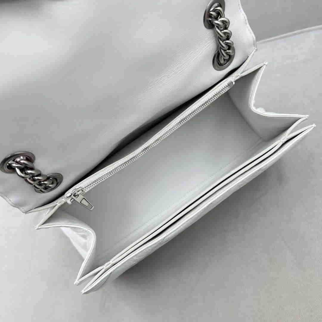 Сумка Crush трапецевидной формы. Фактурная стеганая телячья кожа с эффектом мятой текстуры, плотный каркас, хорошо держит форму, основное отделение застегивается при помощи клапана и скрытого магнитного замочка на нем, внутри небольшой дополнительный карман на молнии, плечевой ремень выполнен из металлической цепи ч`рного цвета, логотип бренда расположен спереди сумки в виде крупной буквы В. Купить Сумку Crush вы можете в черном и белом цветах.
