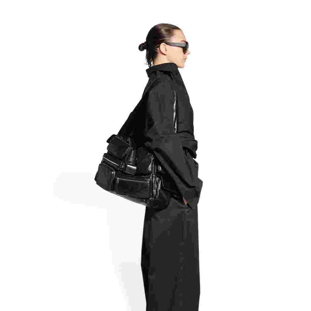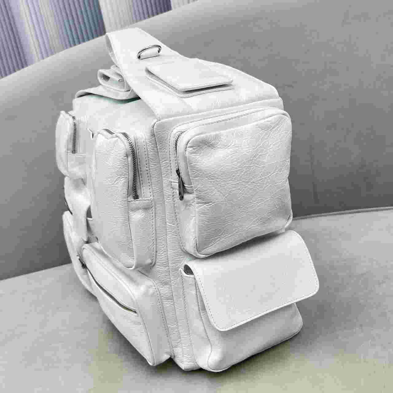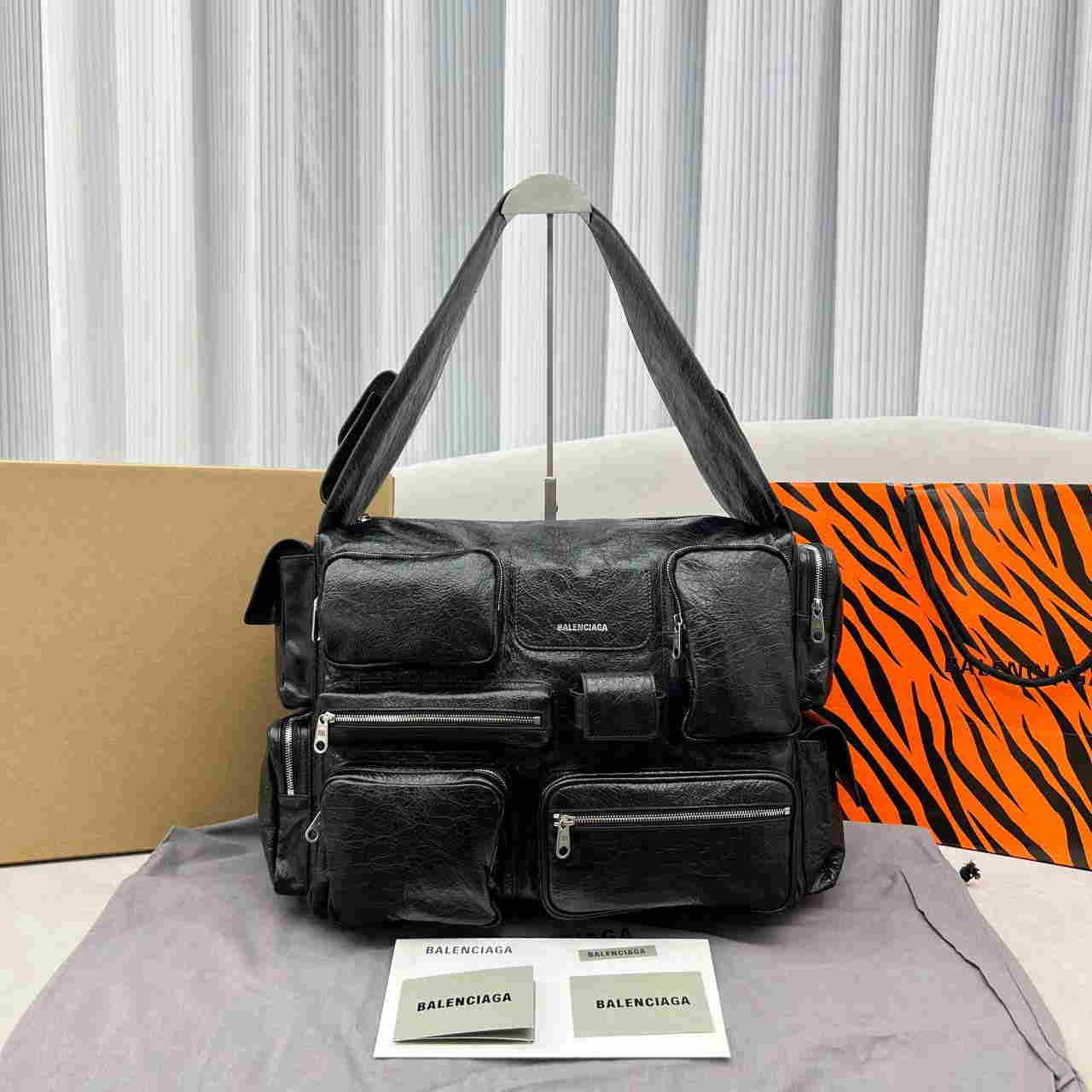 Сумка Superbusy с накладными карманами и верхней ручкой. Натуральная текстурированная овечья кожа, прямоугольная форма и устойчивое дно, большое основное отделение, на внешней стороне сумочки и по бокам размещены объемные накладные карманы на молнии и с клапанами на магнитных замках, на внутренней стороне находится врезной карман на молнии, также сумка украшена тисненым названием бренда. Купить сумку Superbusy можно в чёрном и белом цветах.