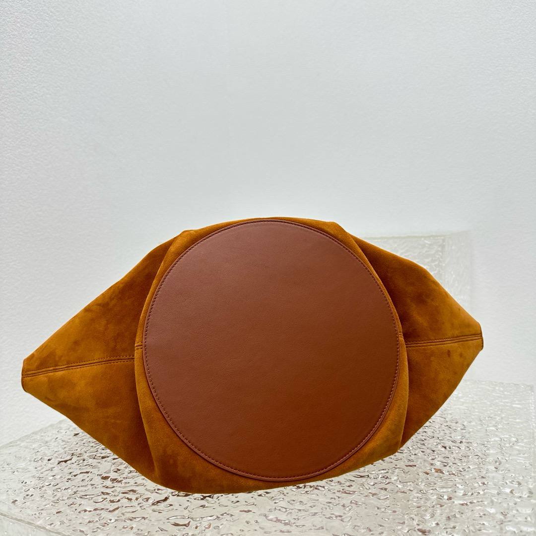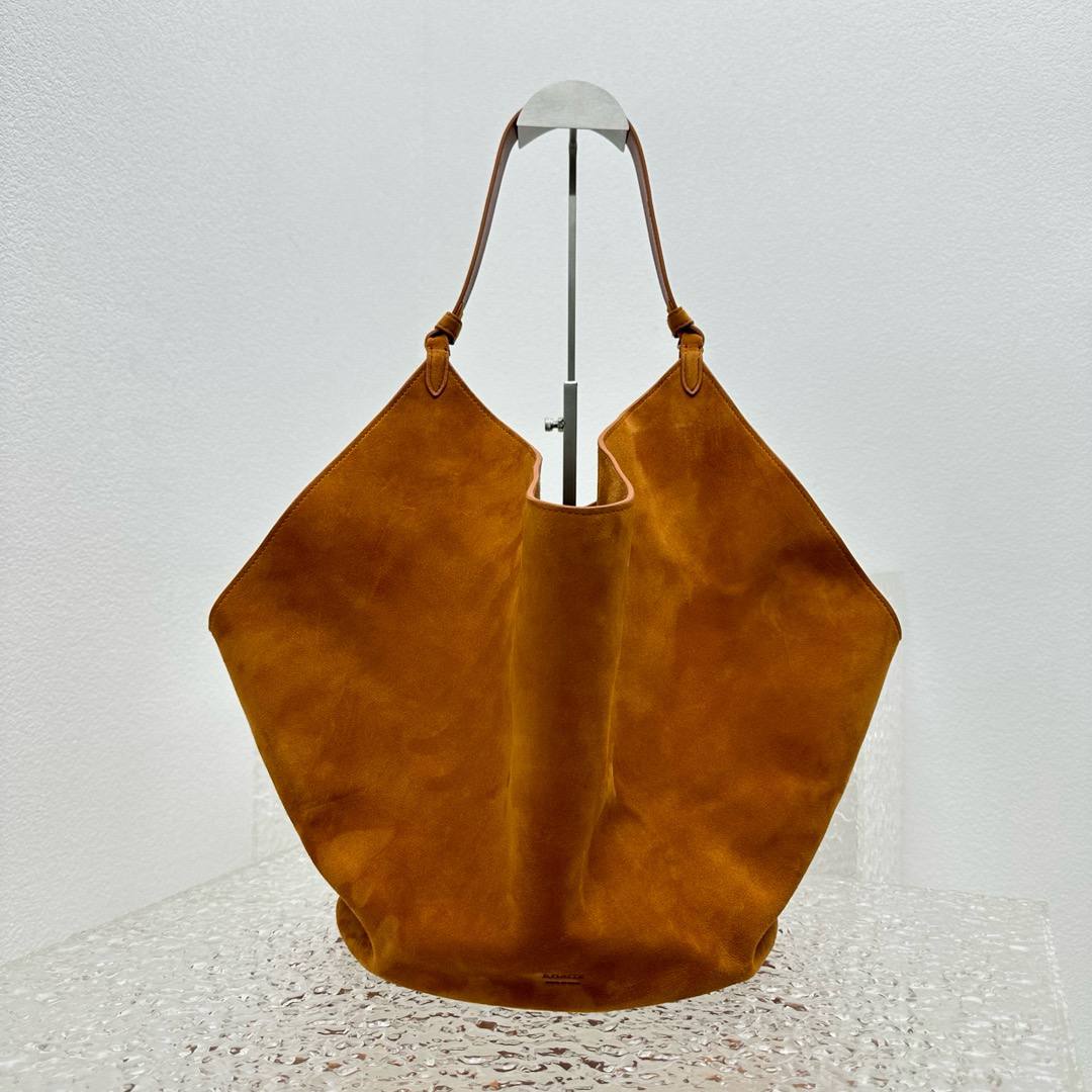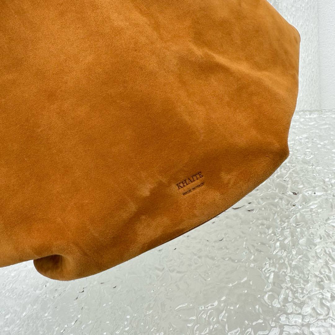 Замшевая сумка Khaite сделана из натуральных материалов в горчичном цвете. Сумка лотос среднего размера на тонком ремешке. Купив сумку вы дополните свой образ.