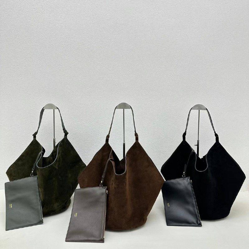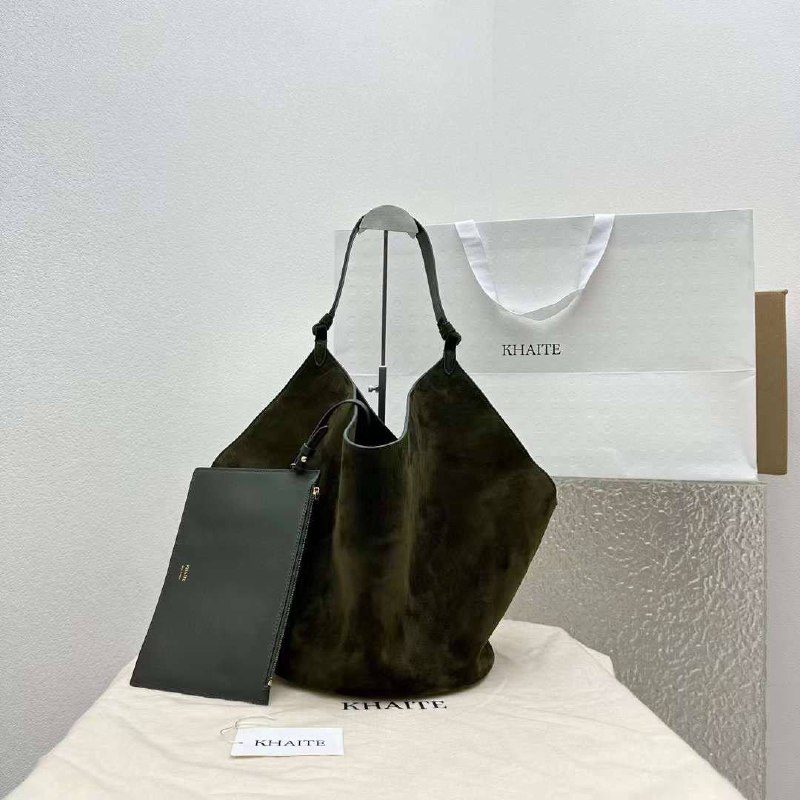 Сумка Khaite Lotus сделана из натуральной кожи, среднего размера с одной ручкой, дополнительно к сумке идет клатч. Купить сумку Khaite Lotus можно в трех цветах: чёрный, зеленый, коричневый.