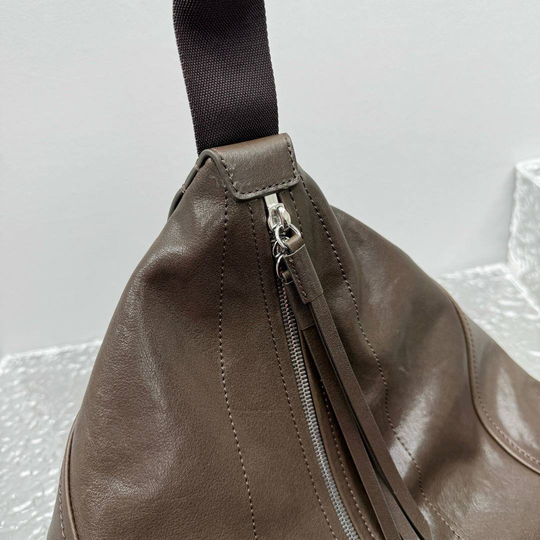 Новинка от LEMAIRE — культовое изделие этого сезона, выполненное из гладкой блестящей кожи и вдохновленное классической сумкой-хобо, но с более вертикальным силуэтом. Элегантная и функциональная, она оснащена мягким холщовым ремешком, боковыми стенками без подкладки для эластичности и усиленным дном для прочности.
