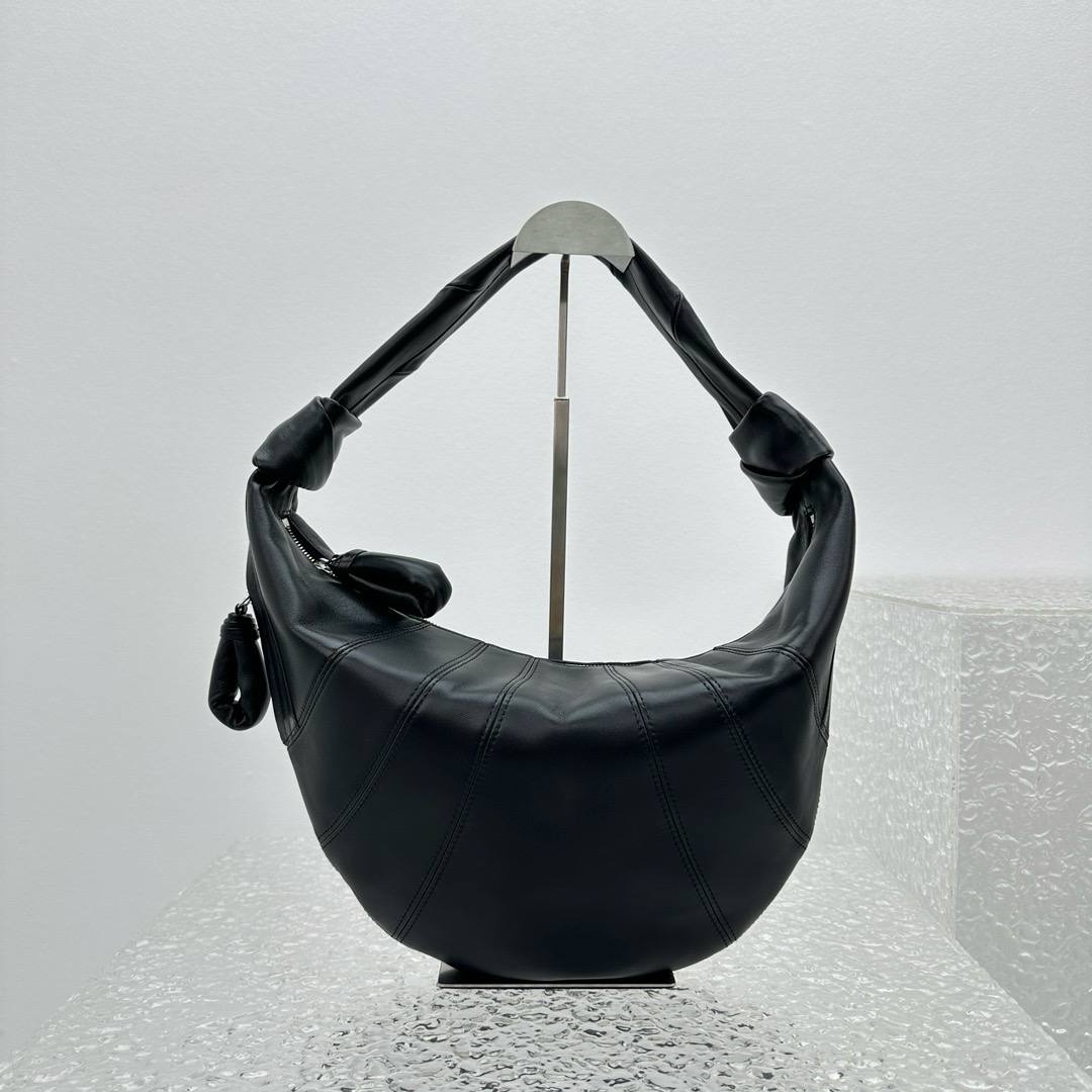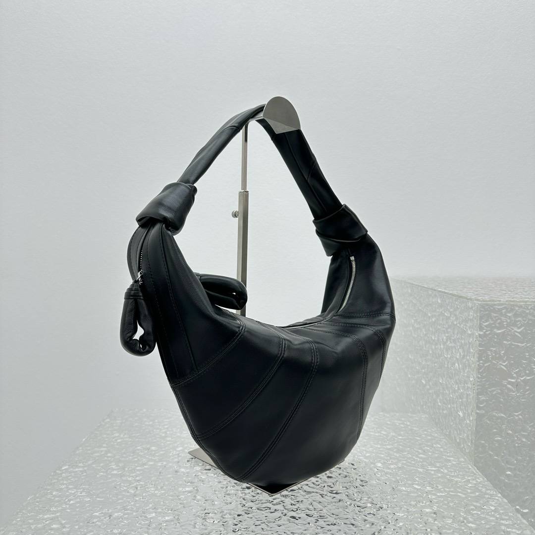 Сумка LEMAIRE Fortune названная в честь всеми любимого слоеного теста и символа французского образа жизни, сделана из индивидуально сшитых панелей кожи, которые создают форму полумесяца. Она расшита белыми и черными бусинами и имеет завязанную сверху ручку, которую можно надеть на плечо, и внутреннюю часть с подкладкой из холста, в которую удобно поместятся кошелек, солнцезащитные очки и блески для губ.
