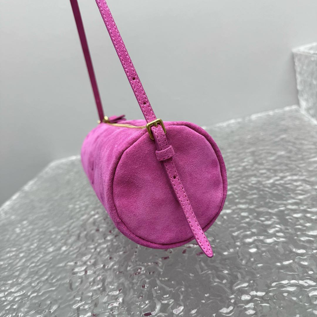 Компактный и функциональный дизайн характеризует эту сумку из мягкой замши. Плечевой ремень добавляет практичности, а логотип с надписью завершает дизайн, придавая ему культовый оттенок.
