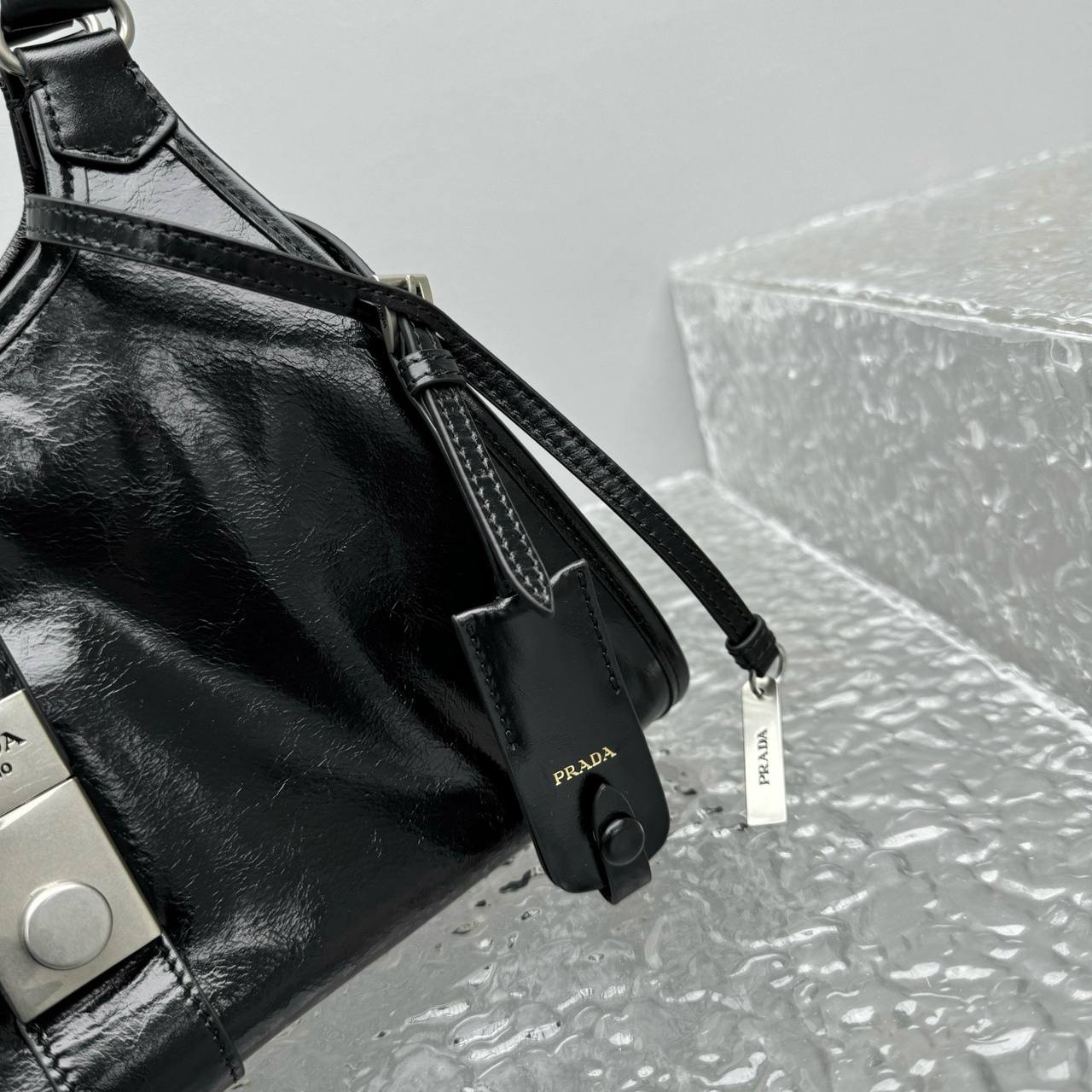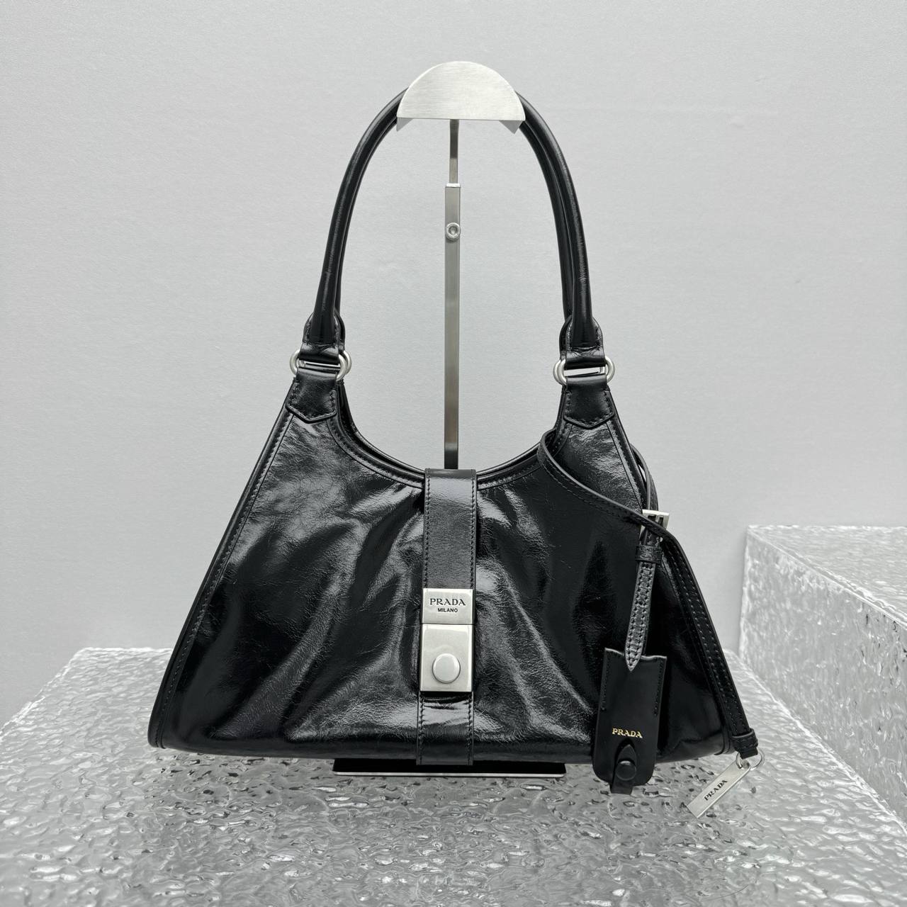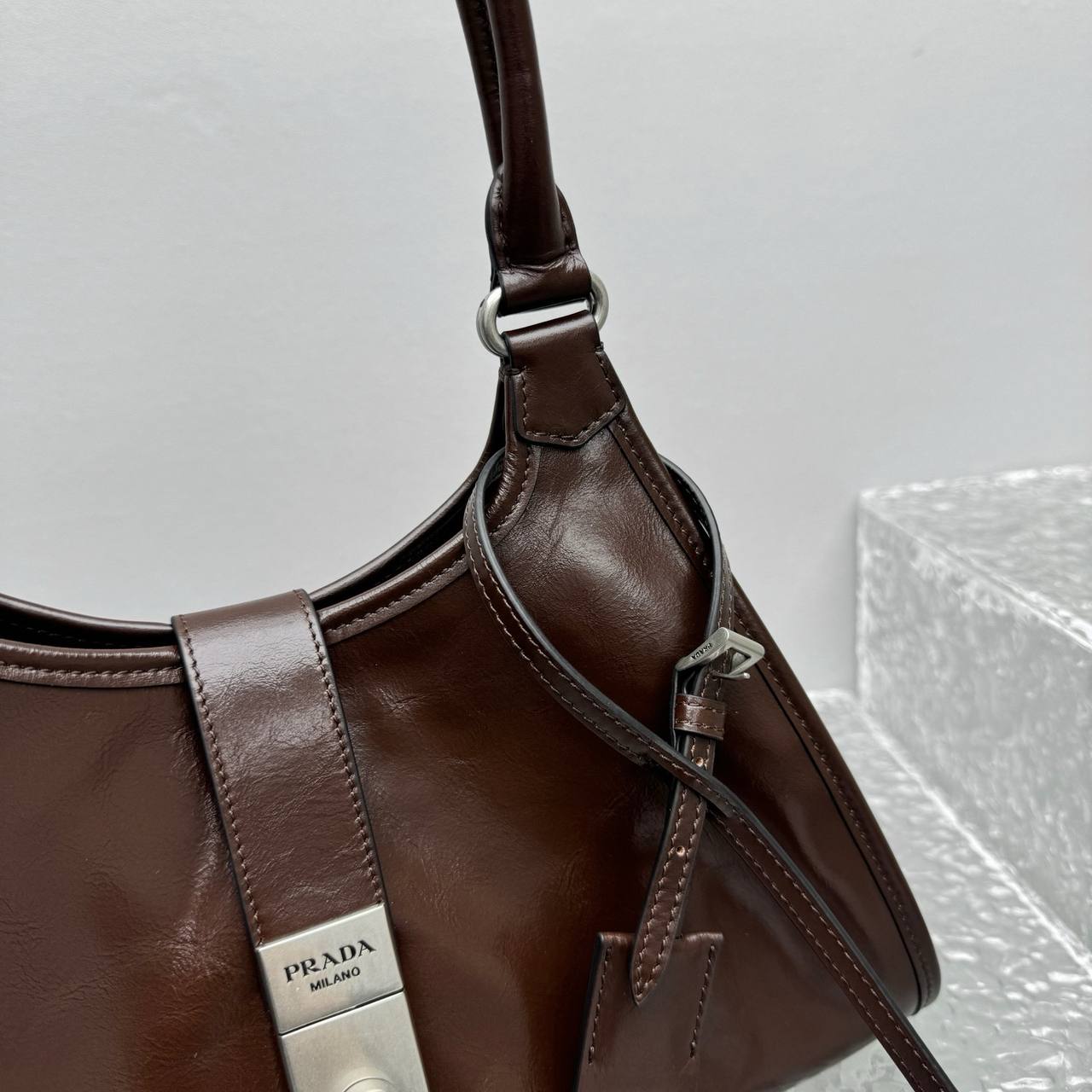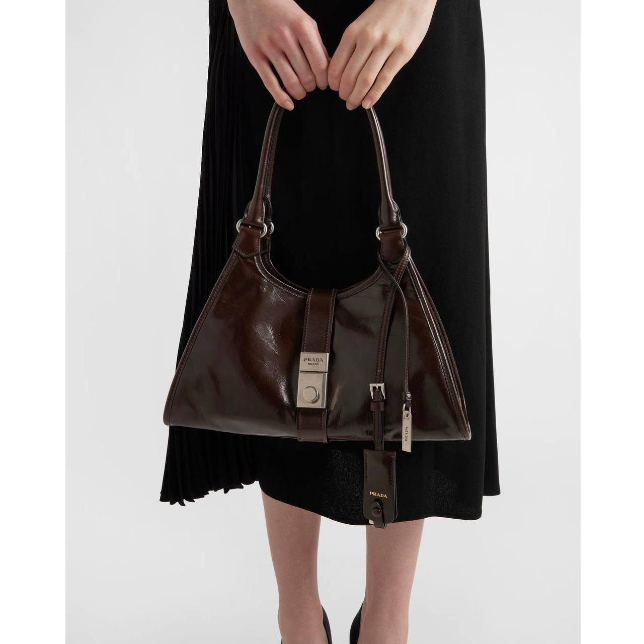 Маленькая сумка Prada берет свой изогнутый силуэт из оригинального стиля, дебютировавшего в 60-х годах. Изготовленная в Италии из натуральной кожи, она подвешена на толстом ремешке, который можно отрегулировать до идеального размера. Внутри достаточно места для повседневных вещей первой необходимости, таких как кошелек, ключи, мобильный телефон и пудреница.