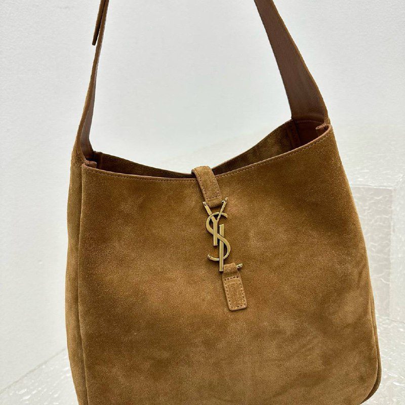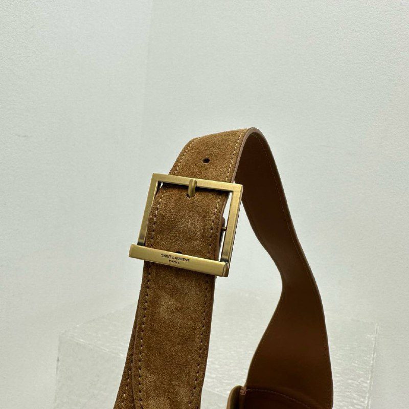 Сумка Saint Laurent из замши в горчичном цвете. Данная сумка на регулируемой ручке, застегивается с помощью эмблемы бренда. Купив сумку Saint Laurent вы дополните свой образ.