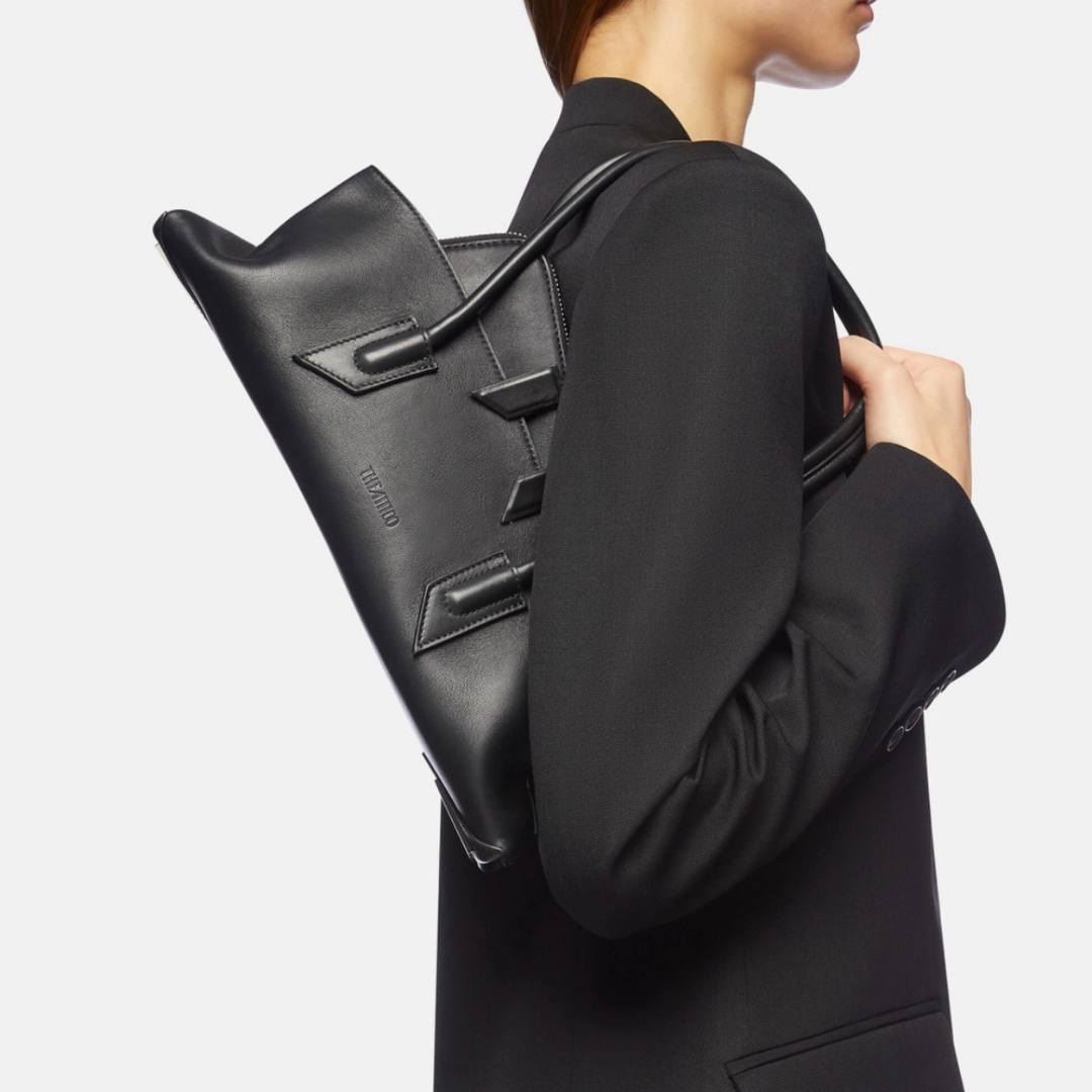 Сумка La Passeggiata от The Attico, что в переводе с итальянского означает «прогулка», станет идеальным спутником во время неспешных прогулок. Она изготовлена из кожи и имеет асимметричный профиль с трубчатыми ручками. Центральное отделение на молнии выступает сверху и имеет накладной карман для мелких предметов, а два боковых отделения идеально подходят для хранения таких необходимых вещей, как телефон, кошелек, ключи и солнцезащитные очки.