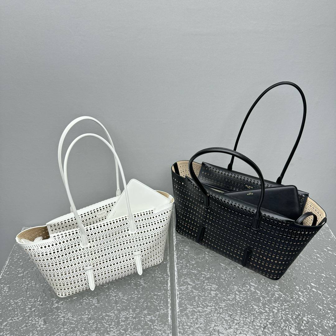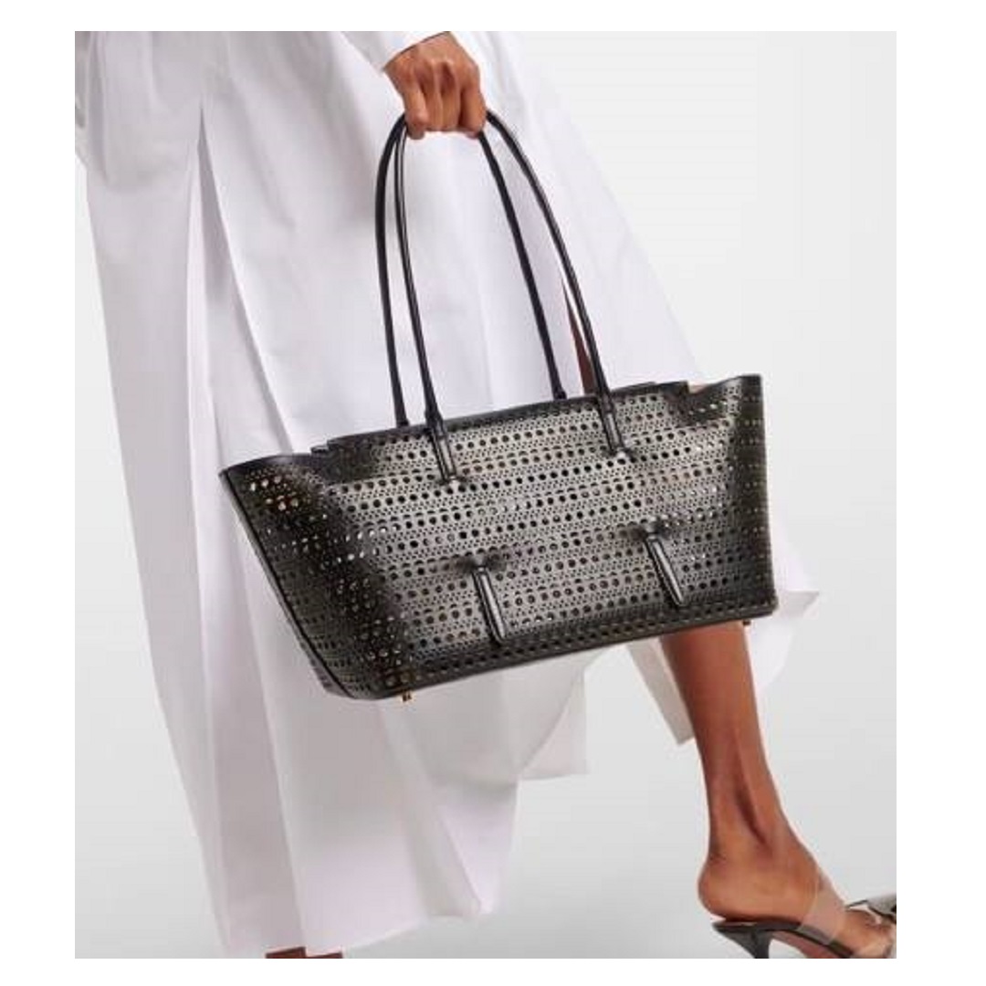 Сумка-тоут Mina имеет графический силуэт с драпированными боковыми сторонами, двойной ручкой. Эта модель, тщательно изготовленная из роскошной телячьей кожи, украшена вырезанным лазером фигуры. Просторный внутренний карман из ягнячьей кожи идеально подходит для хранения всех необходимых вещей.