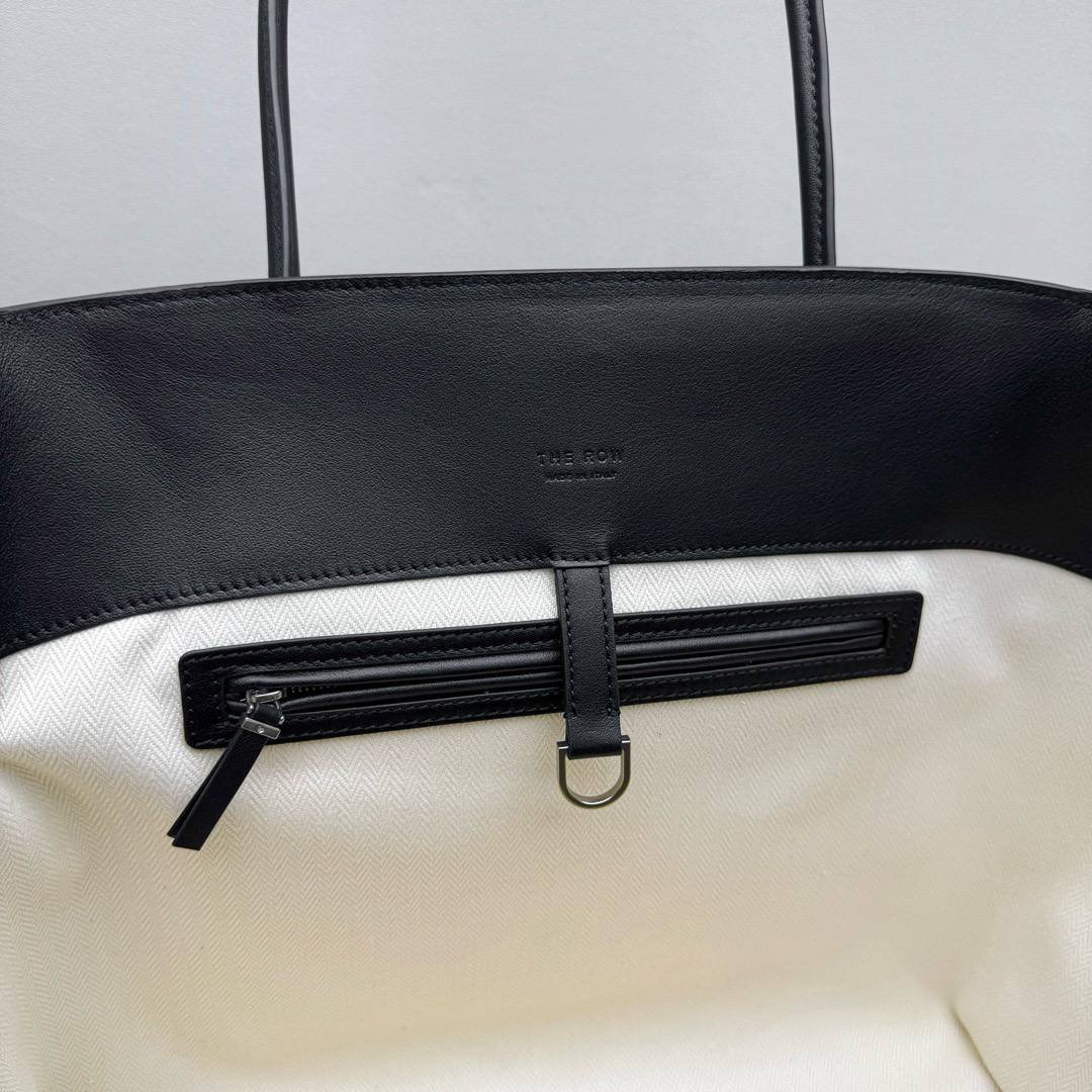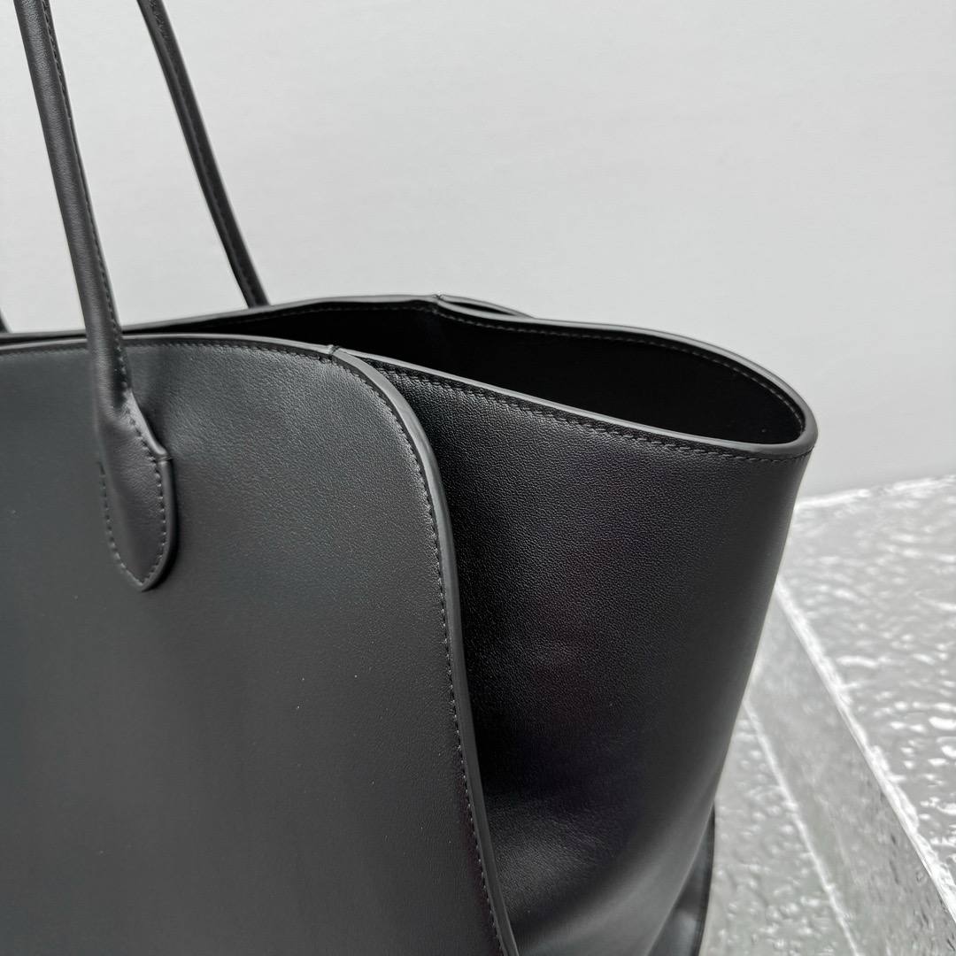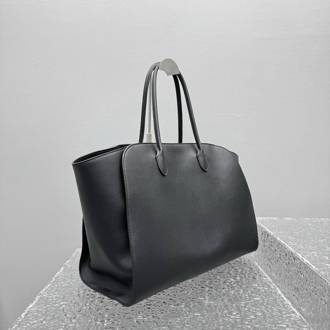 Сумка-тоут от The Row Marlo была сделана в Италии из кожи в черном цвете. Она украшена тиснением логотипа бренда, места внутри хватит для вашего кошелька, солнцезащитных очков, компактного кошелька и даже планшета.