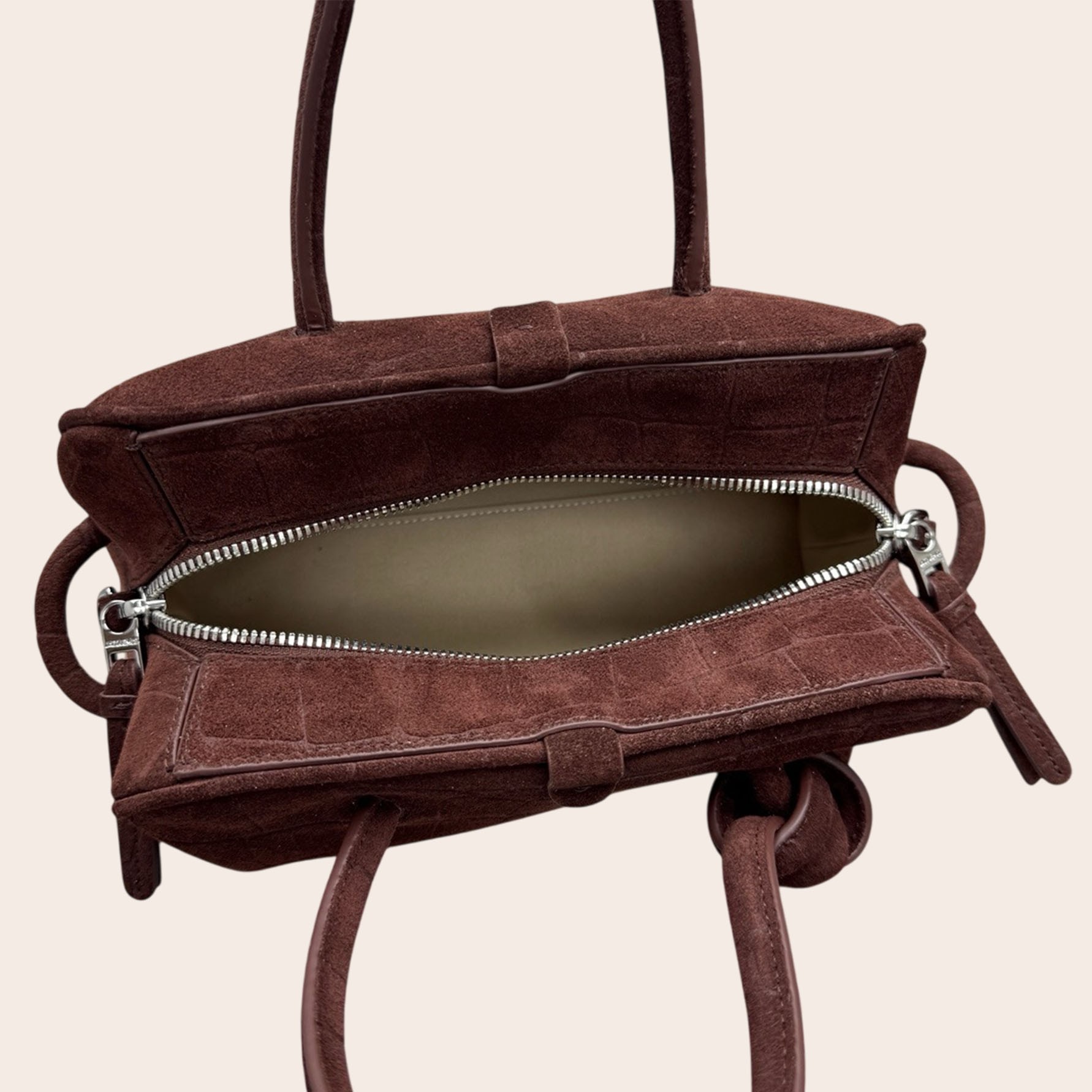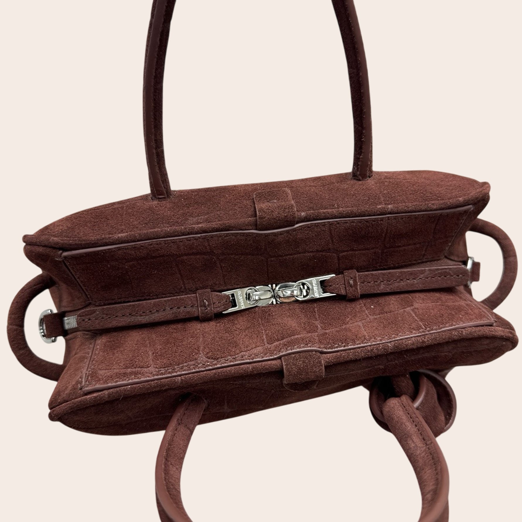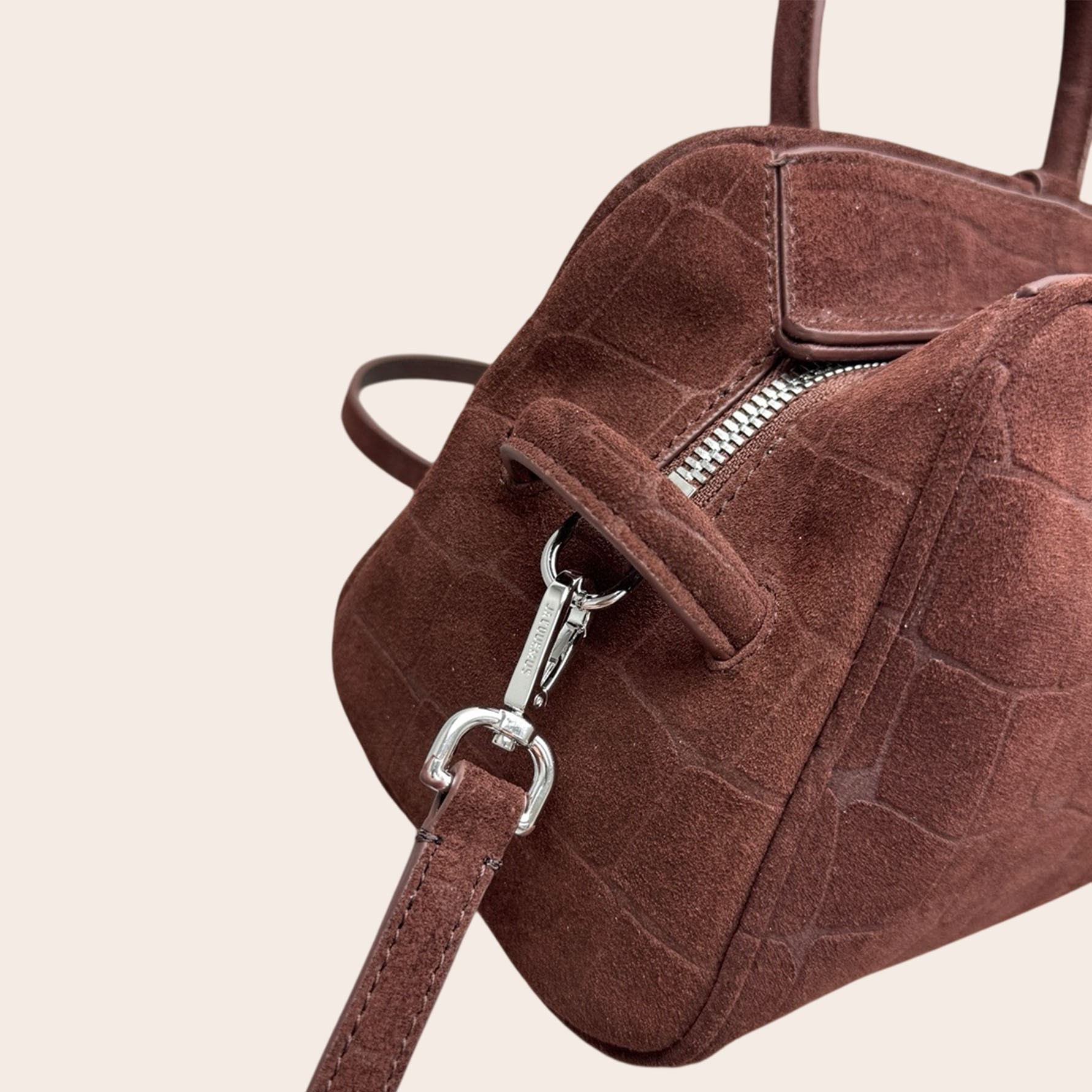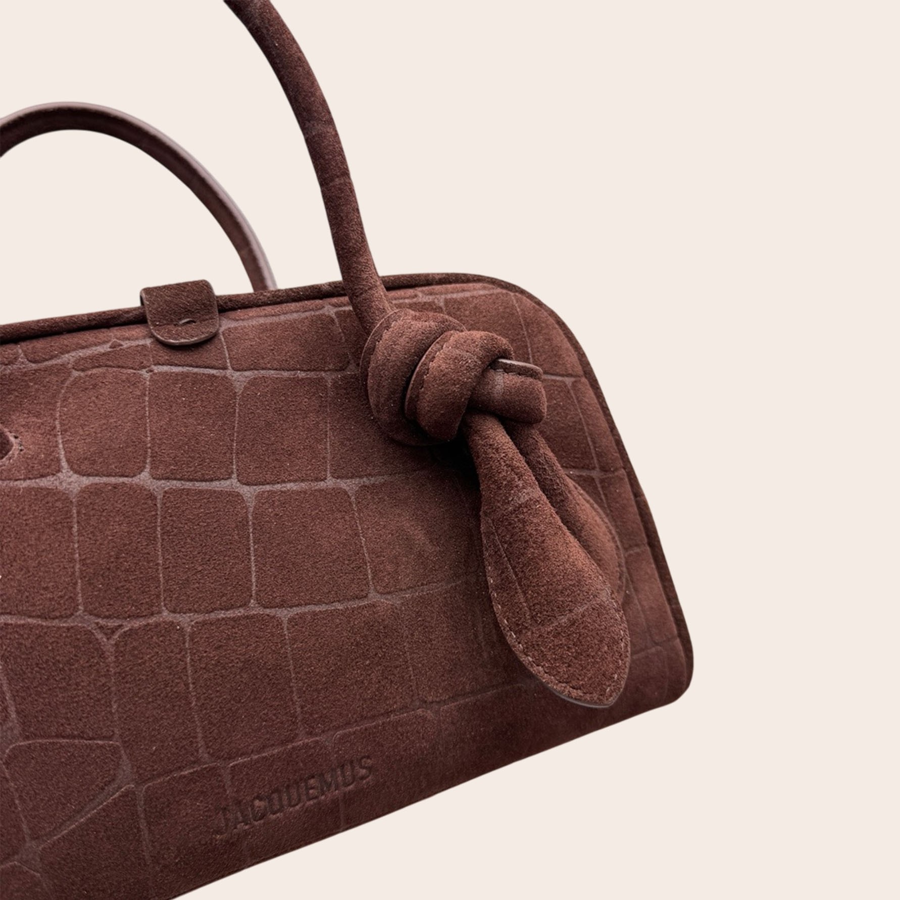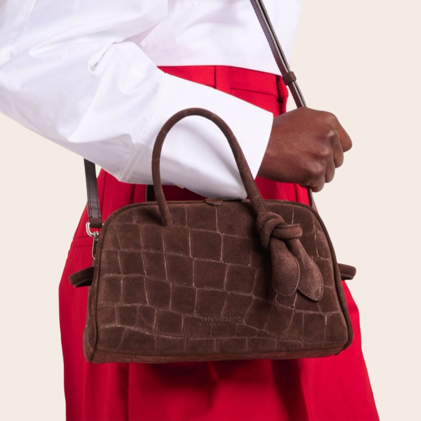 Сумка The Turismo от Jacquemus — это мягкая интерпретация классического стиля для боулинга. Она изготовлена из замши с эффектом крокодиловой кожи, имеет слегка изогнутую форму и ручки, искусно завязанные с одной стороны. В компактном внутреннем отделении достаточно места для телефона, визитницы и ключей.