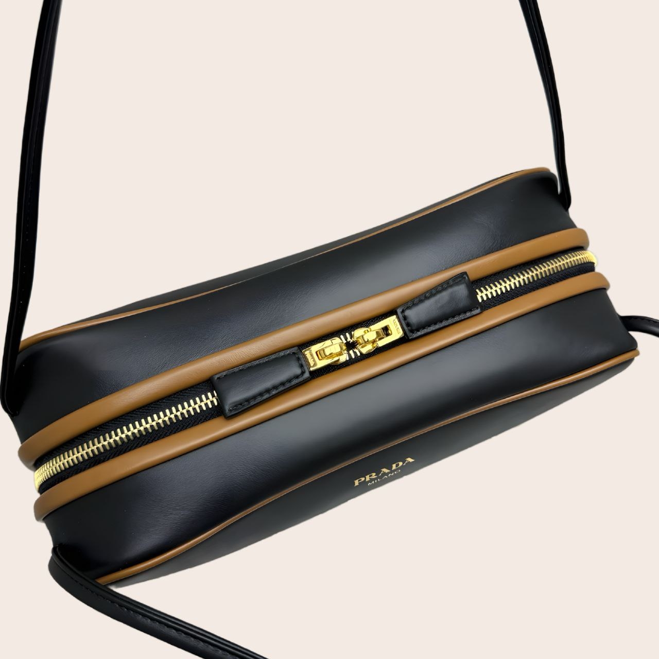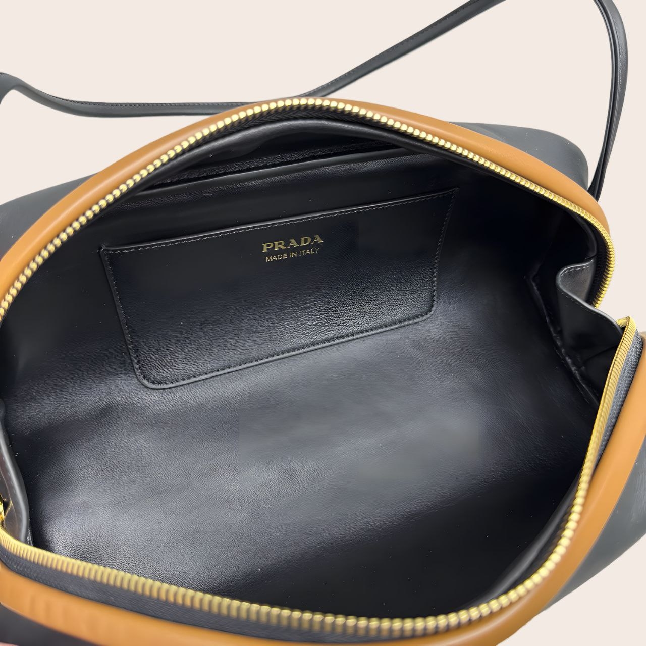 Сумка Prada Swing из мягкой кожи отличается гармоничным сочетанием классических и современных элементов. Застежка-молния добавляет функциональности, а надпись с логотипом придает индивидуальность.