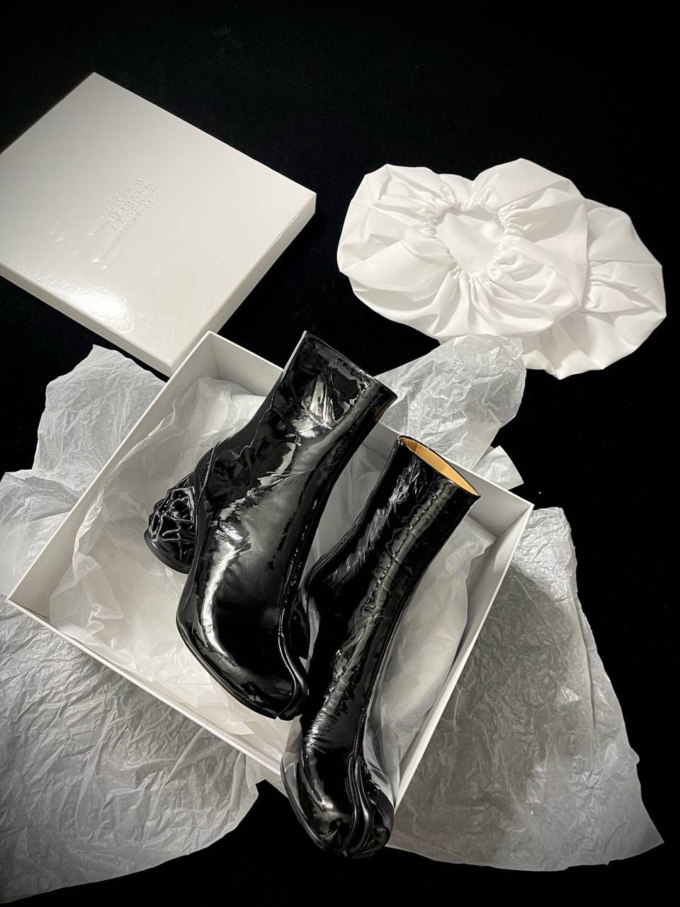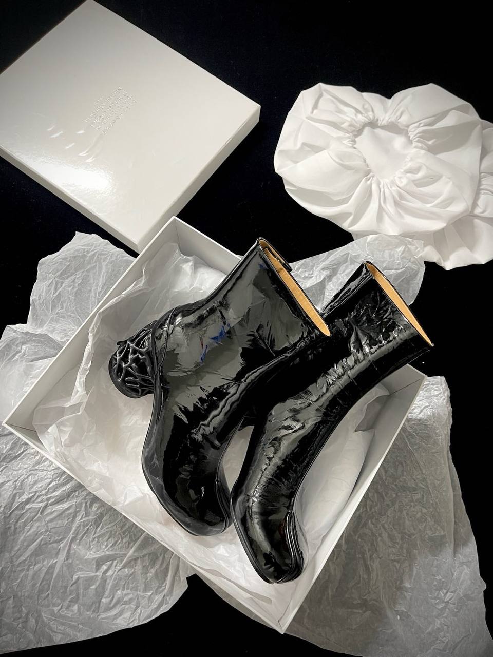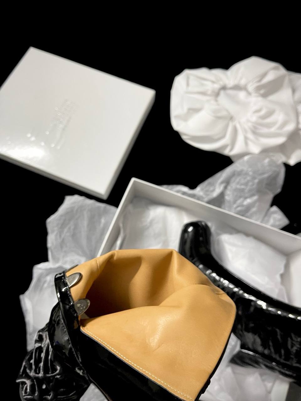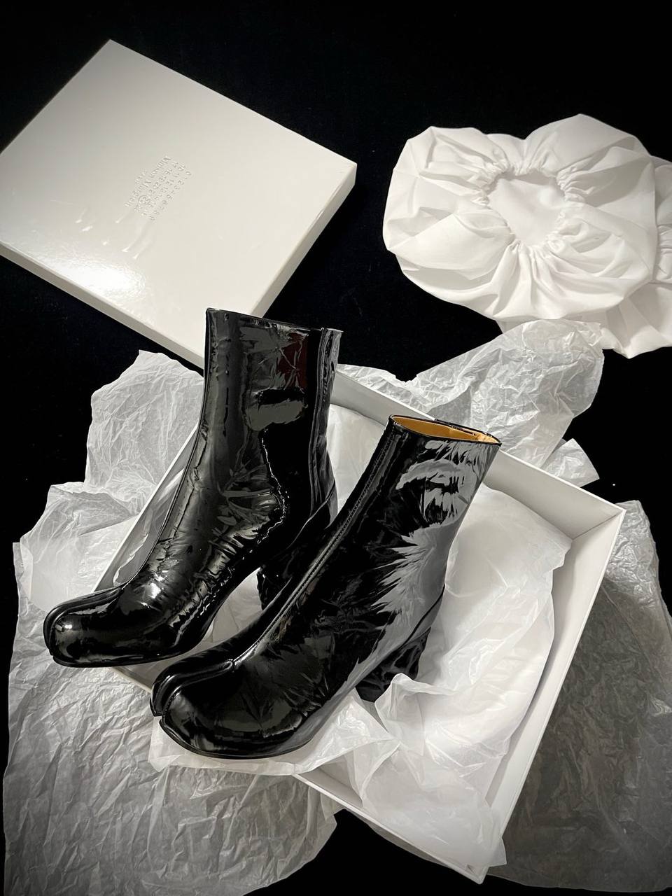 Таби Maison Margiela сделаны из натуральной кожи. Данная модель имеет лакированную отделку и знаковый раздвоенный носок Таби. Украшает обувь каблук в форме конуса средней высоты. Купив Таби вы дополните свой образ.