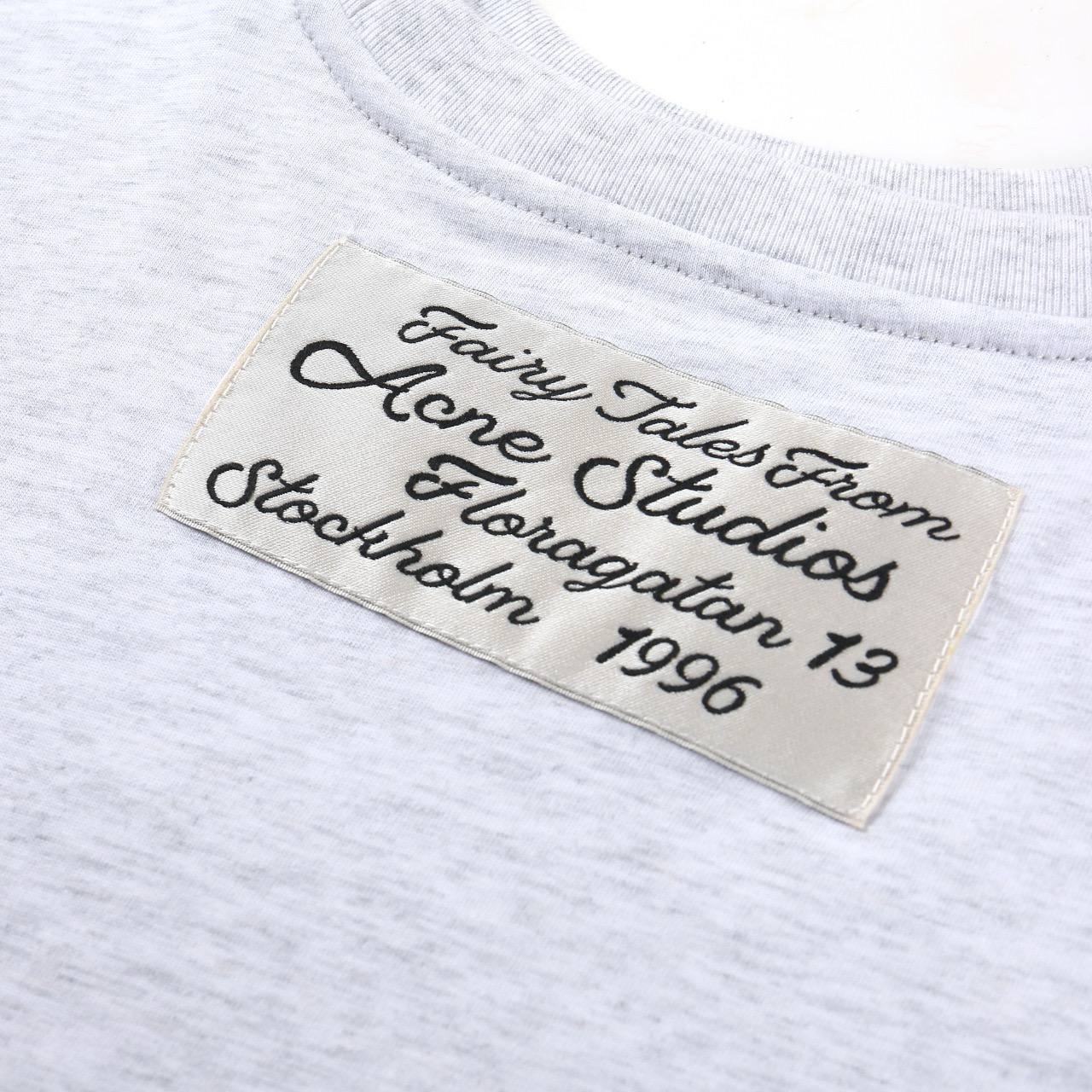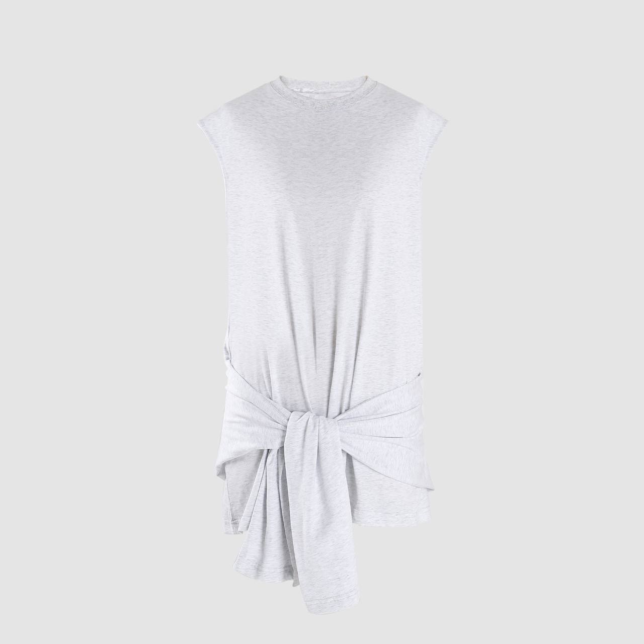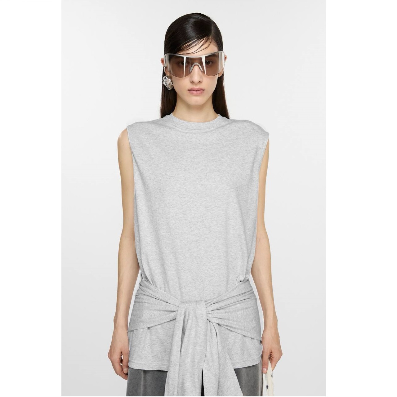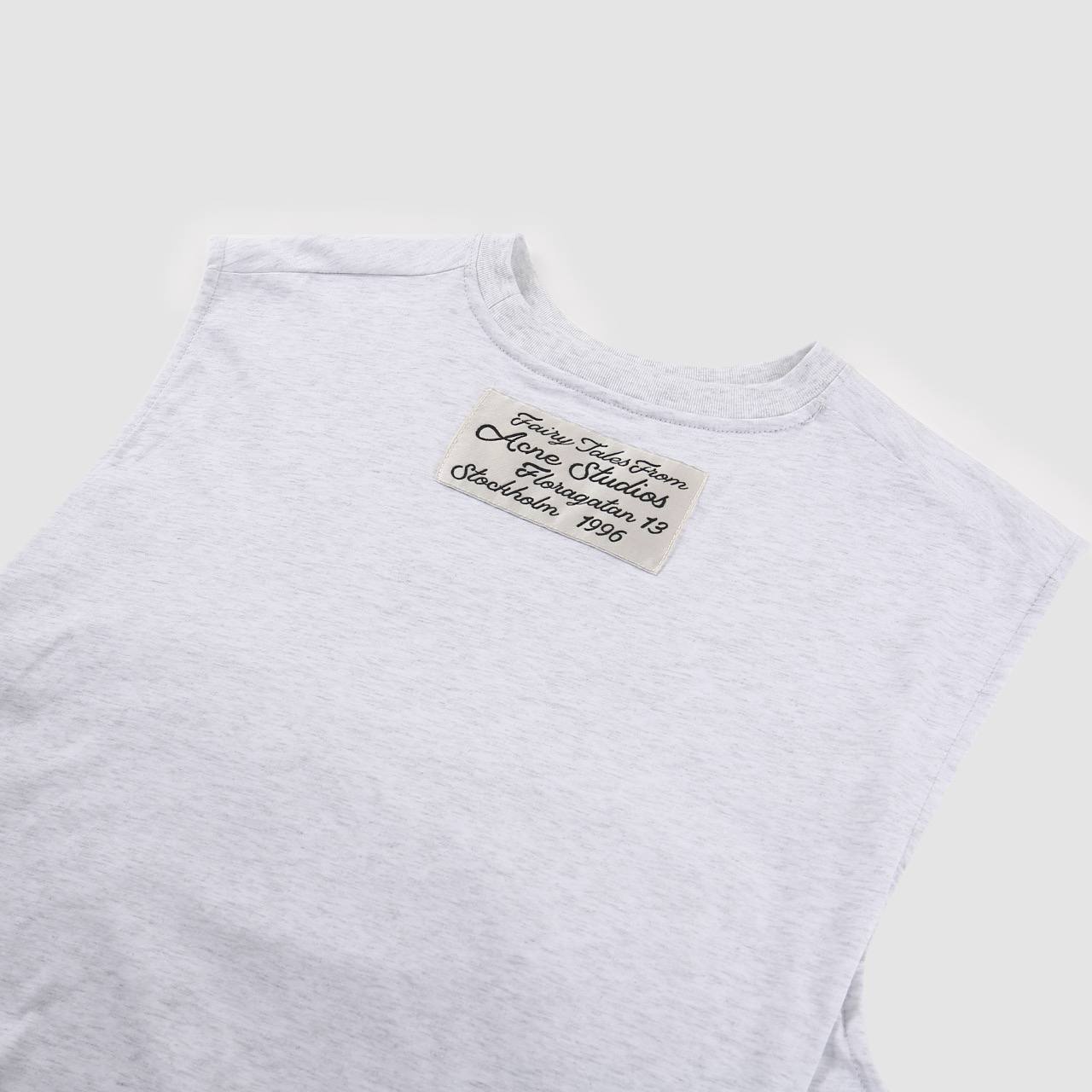 Топ Acne Studios с деконструкцией выполнено из натурального хлопка белого цвета. Украшен том надписями и полотном, которое можно завязать сверху или снизу.
