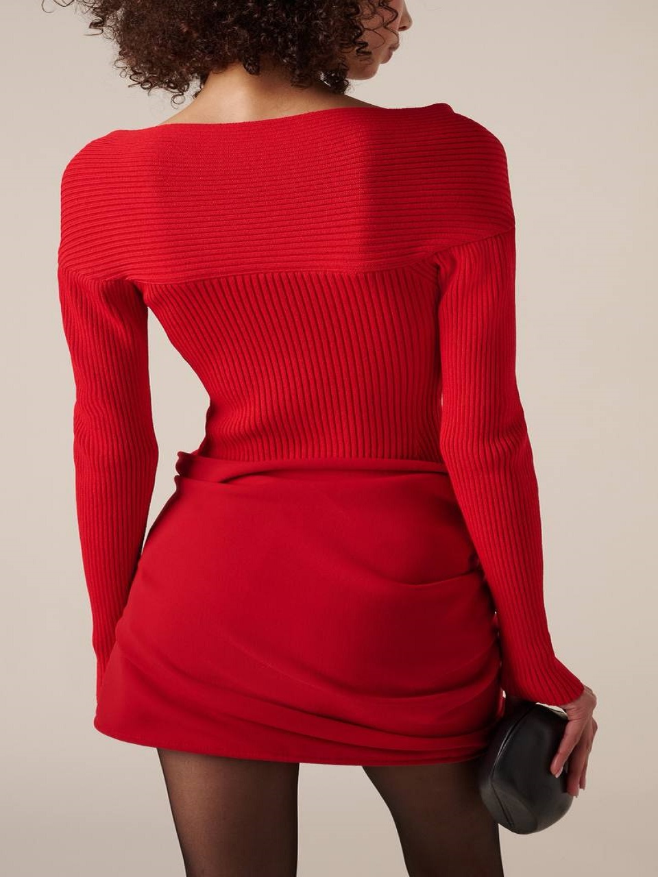 Топ-бюстье Magda Butrym сделан в красном и черном цвете. Данная модель с длинными рукавами и вырезом на груди. Купив топ вы дополните свой образ.
